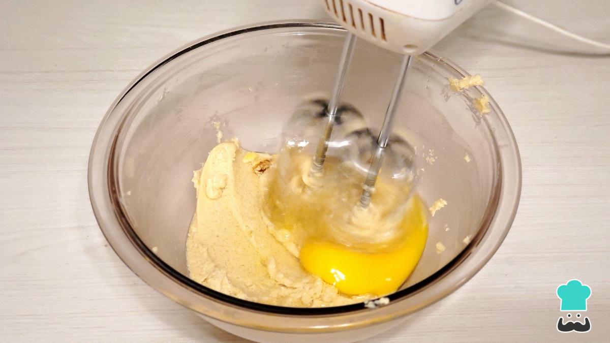 Cuando esté bien cremosa la mezcla de mantequilla y azúcar, añade el huevo y aromatiza con esencia de vainilla. Remueve bien hasta obtener una crema homogénea.