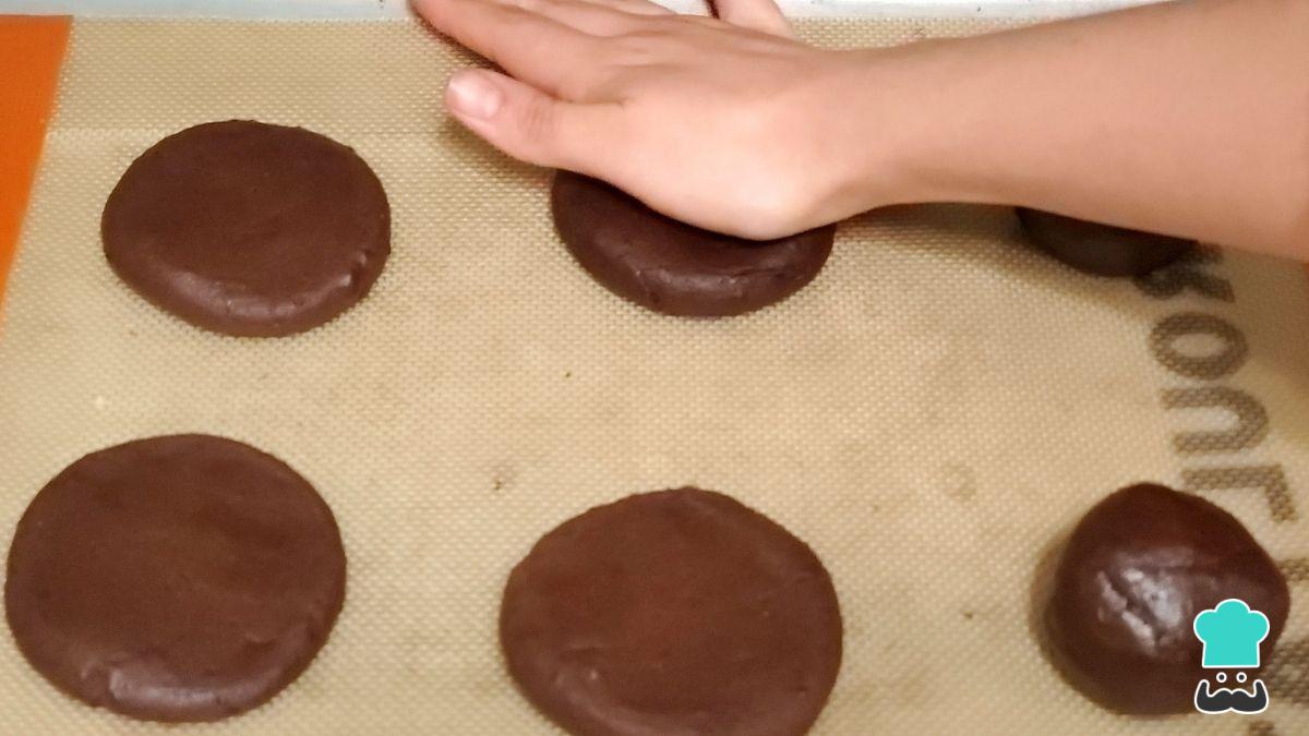 Coloca las bolitas en una placa con tapete de silicona o papel de horno y aplánalas un poco con las manos.