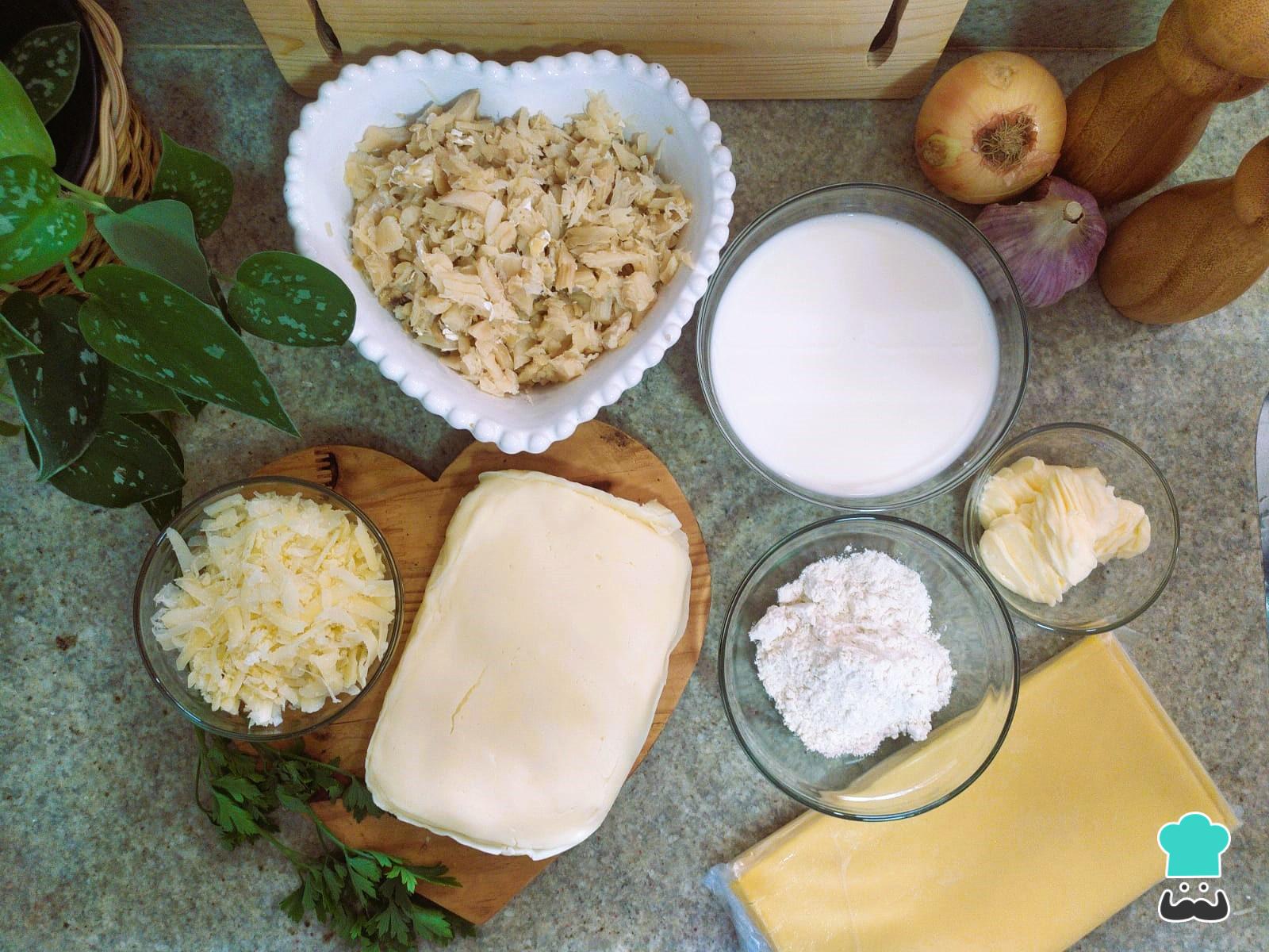 Separa todos los ingredientes que necesitarás para preparar esta lasaña de bacalao.
