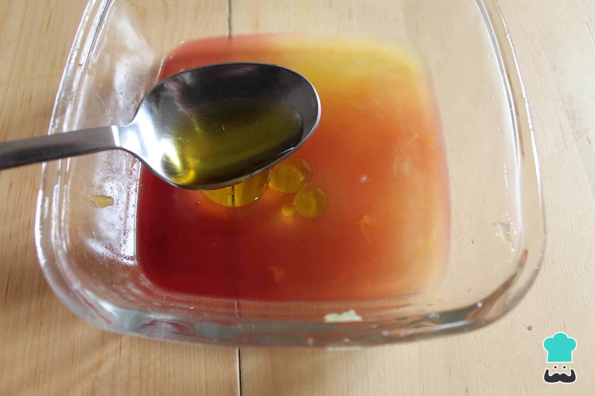 Haz una vinagreta con los jugos que hayas recogido. A continuación, añade el vino tinto y remueve.