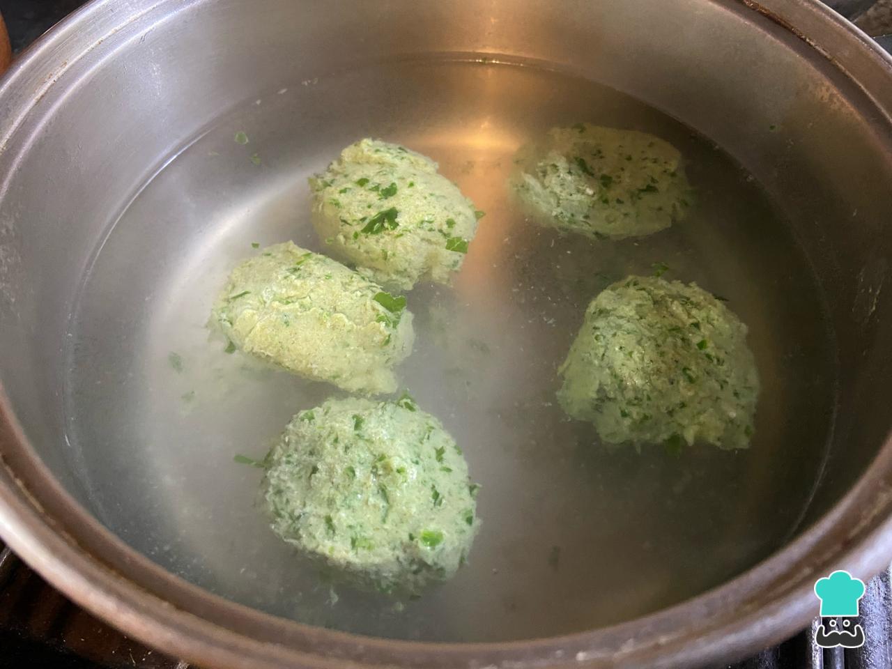 Coloca abundante agua en una cacerola y lleva al fuego hasta que rompa el hervor. Introduce los malfatti y cuando suban a la superficie, espera 1 minuto antes de retirarlos. Cocínalos por tandas para que no se peguen entre sí.