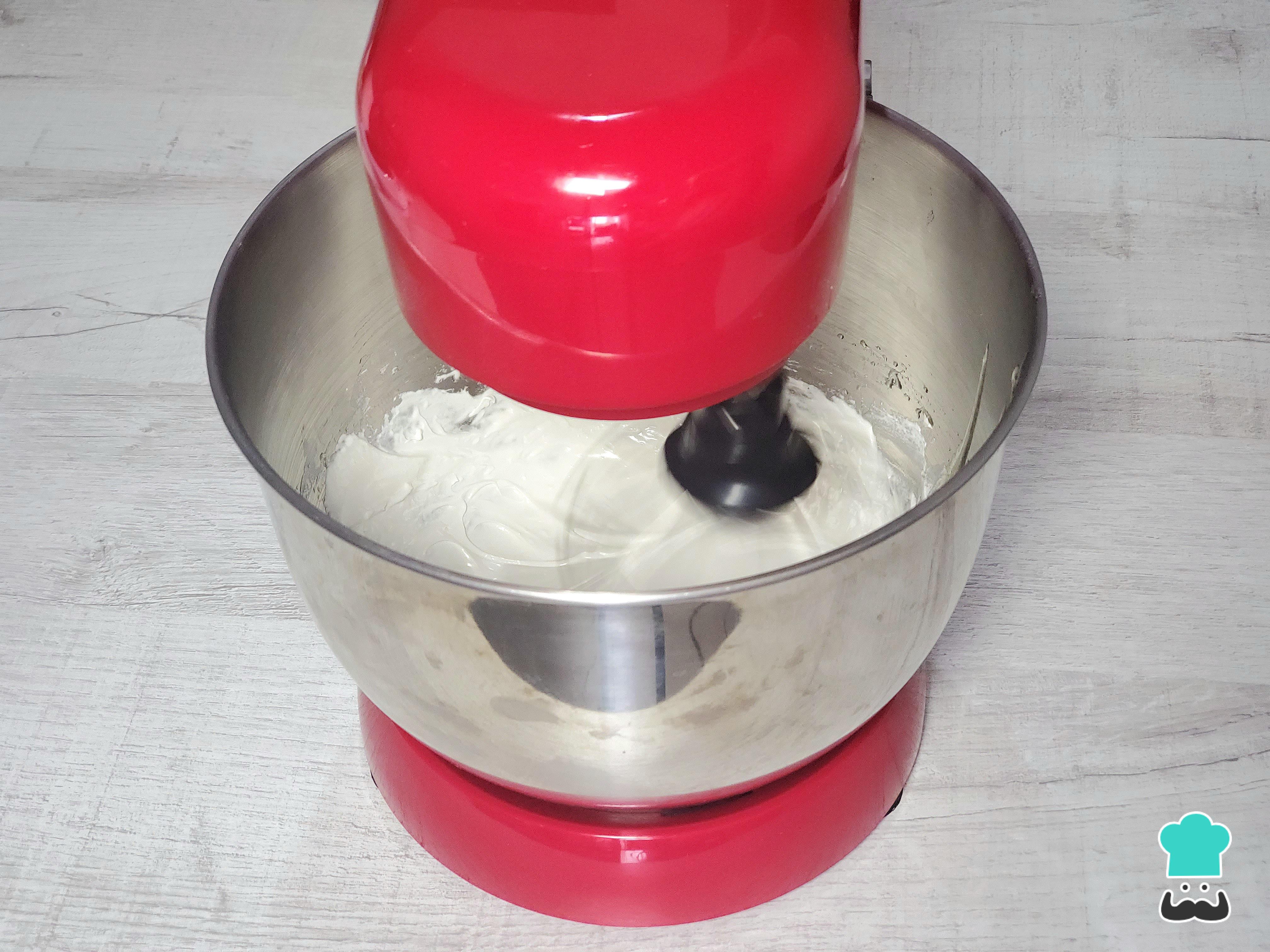 Al mismo tiempo que el almíbar alcanza los 110 °C, bate las claras a punto de nieve.