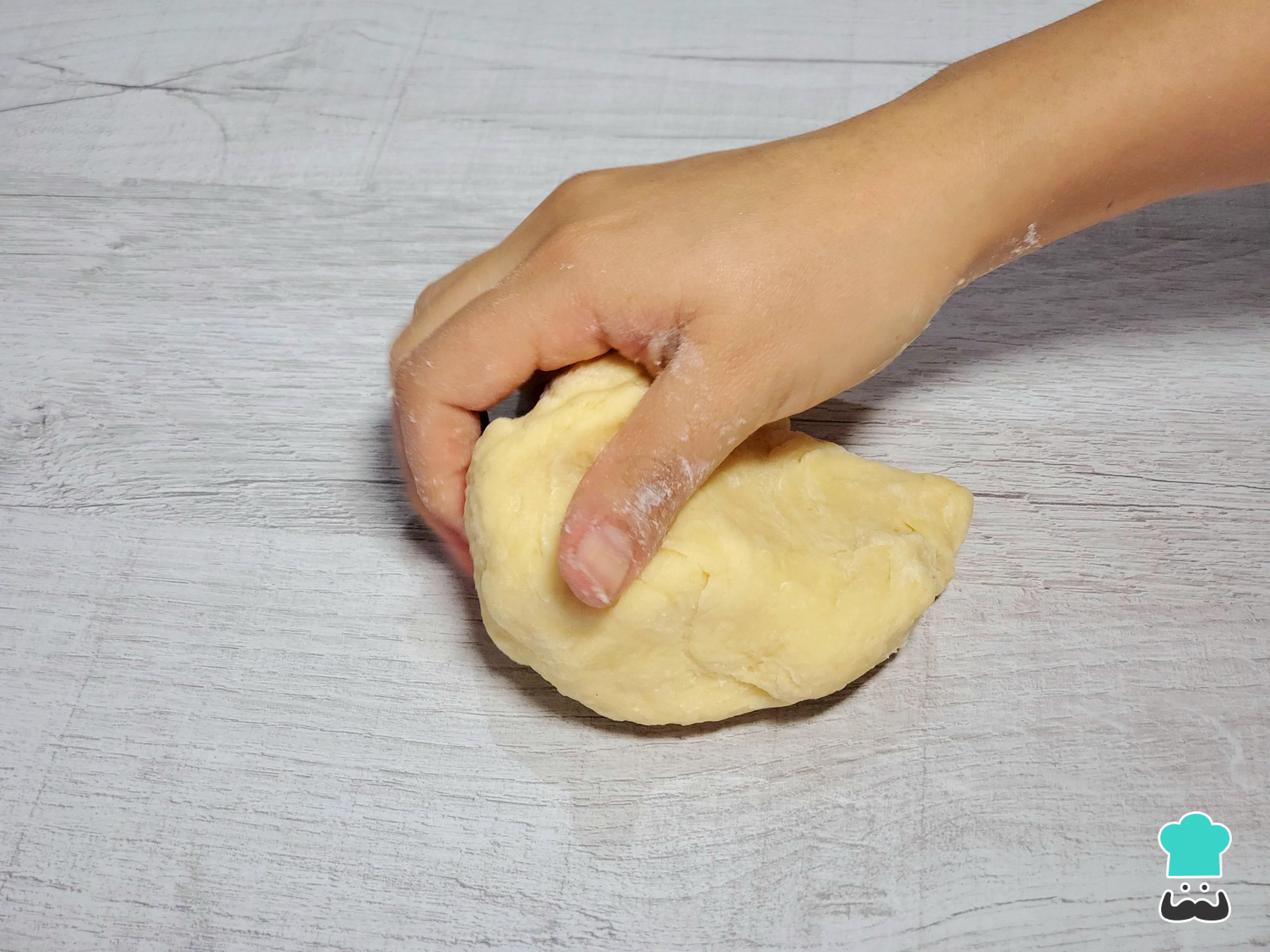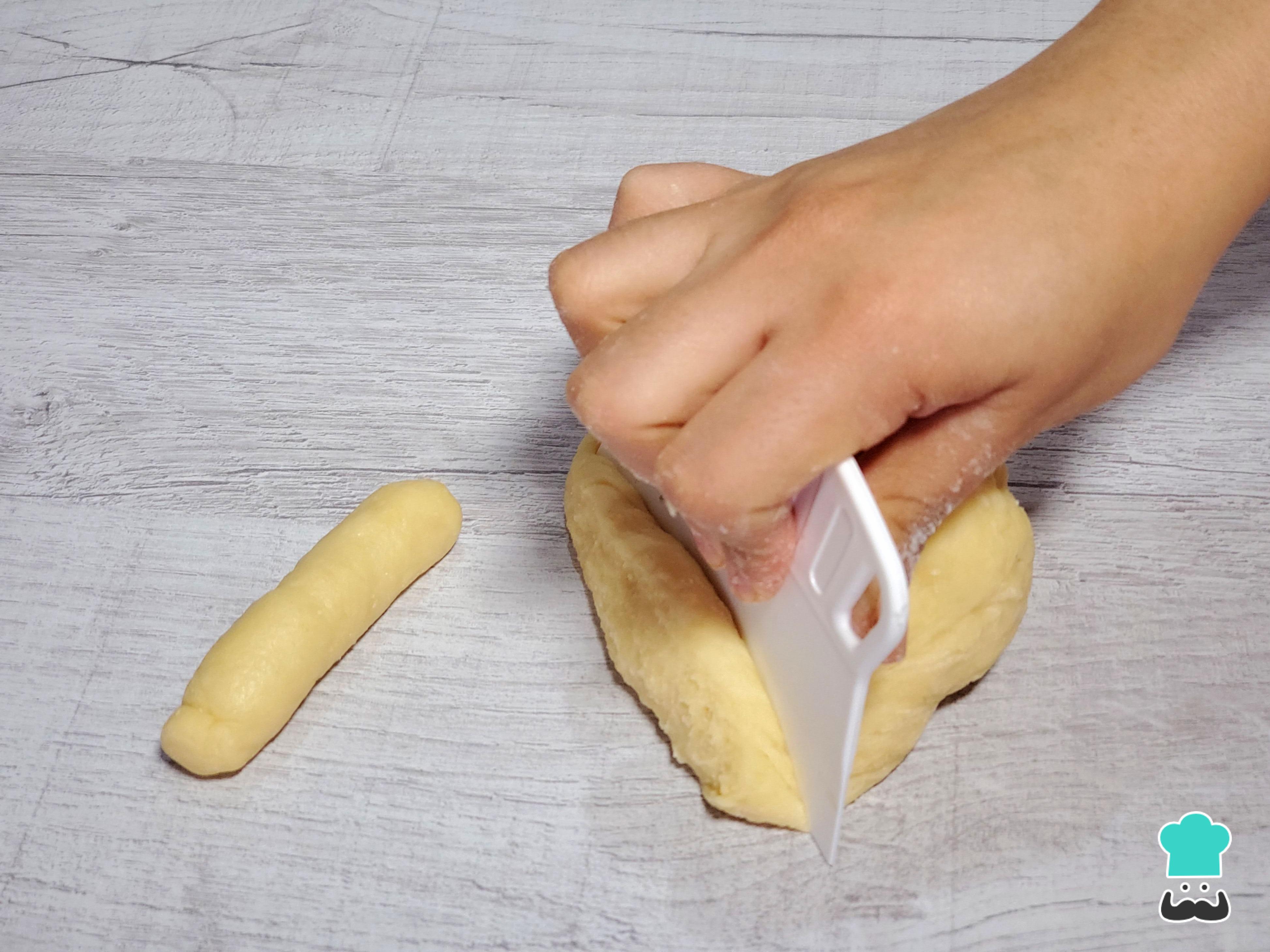 Amasa hasta que la masa se despegue fácilmente de los dedos y tenga una textura manejable. En este punto, dale la forma que prefieras. Las opciones más tradicionales incluyen bastones, que son fáciles de moldear, o lazos, que aportan un toque decorativo.