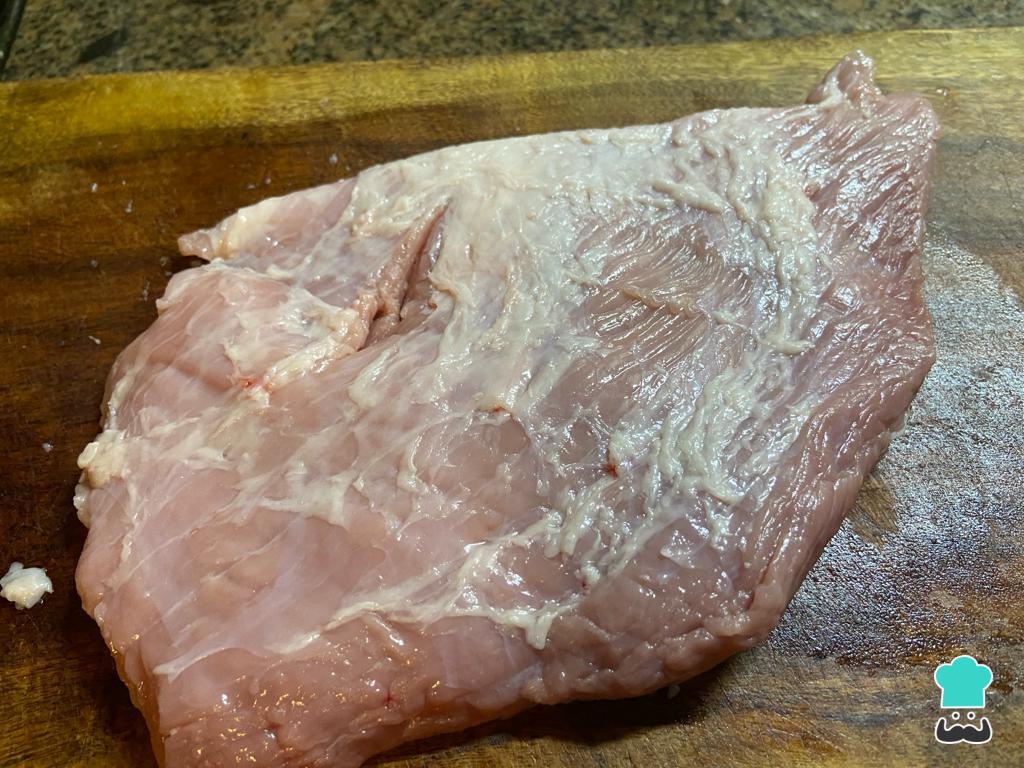 Como primer paso limpia el exceso de grasa del matambre.