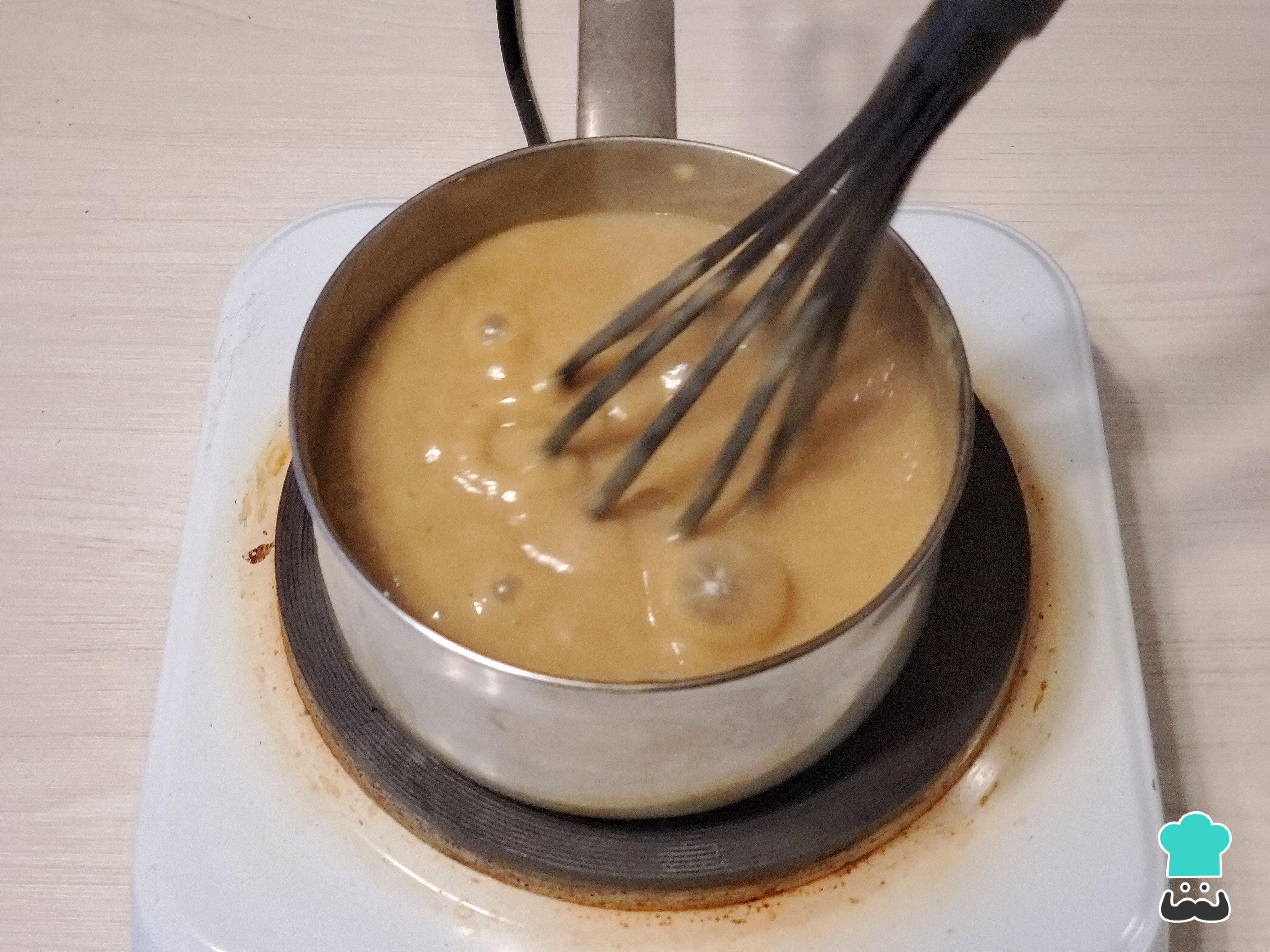 - Remueve con el batidor de globo y mantén en fuego por un par de minutos hasta que espese.