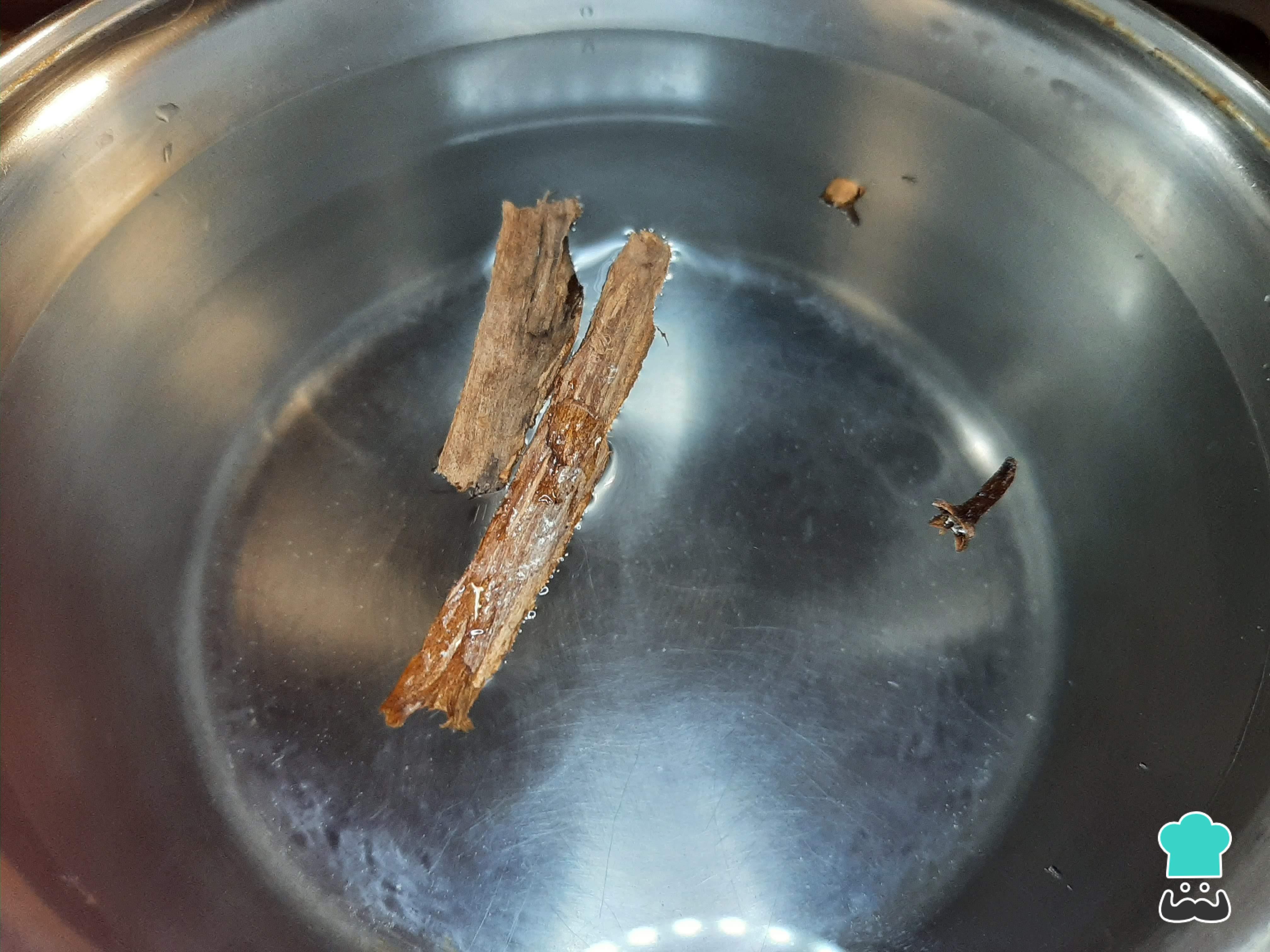 En una olla mediana con 1 litro de agua, incorpora la canela y el clavo de olor.