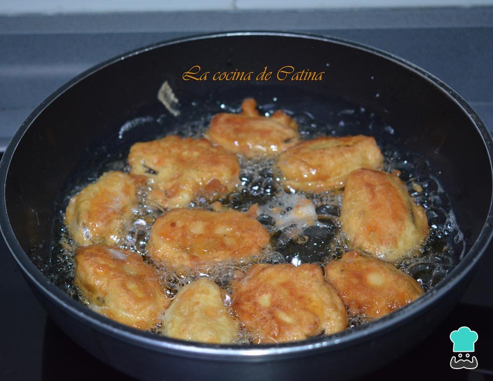 Ponemos a calentar el aceite en una sartén. Rebozamos los mejillones y cuando el aceite esté bien caliente, con la ayuda de un tenedor, los vamos sacando de la pasta y los vamos friendo en el aceite.
