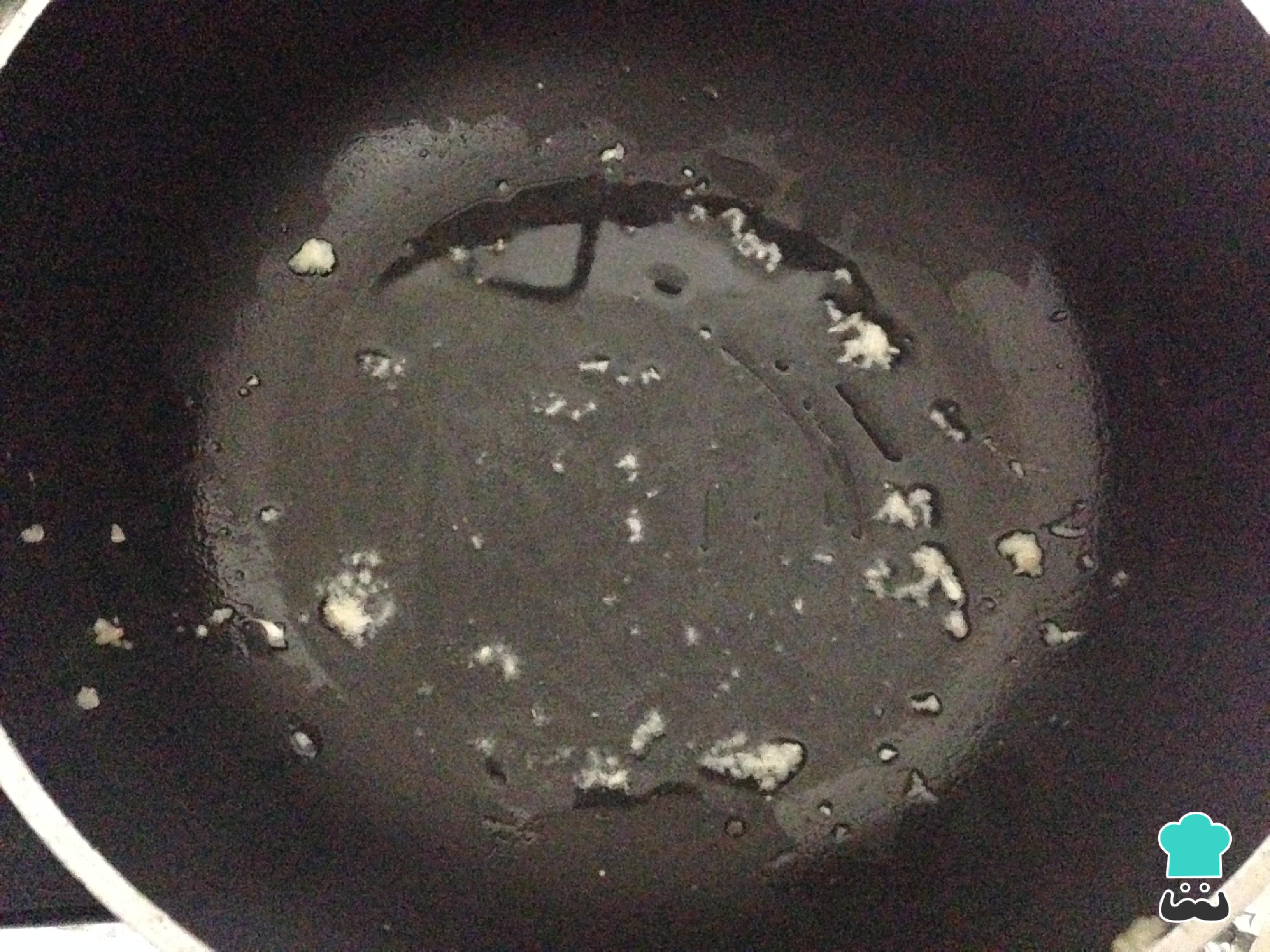 Picar el ajo finamente y cocinar en una olla hasta que este dorado.
