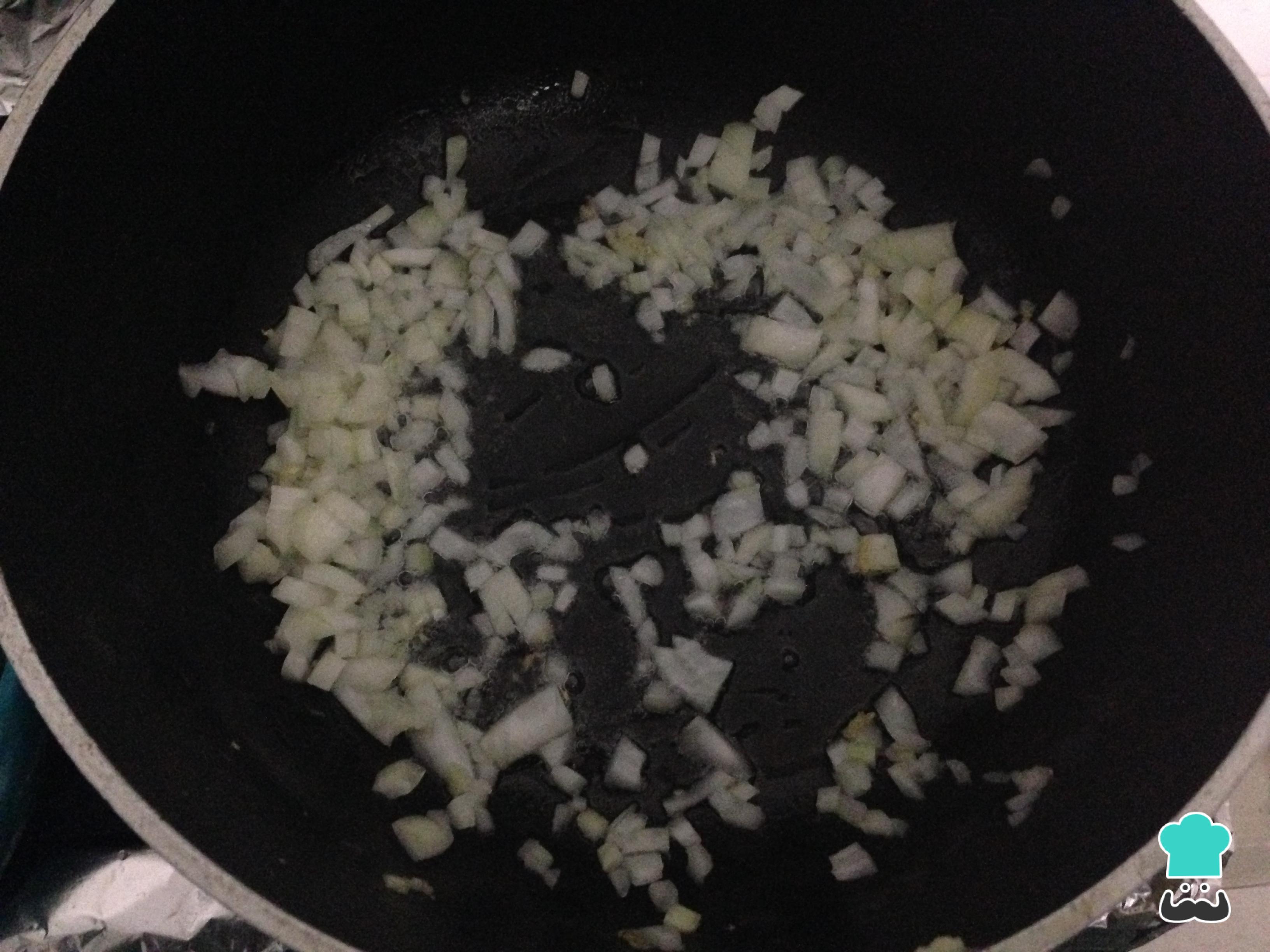 Picar la cebolla y cocinarla junto al ajo hasta que este blanca.