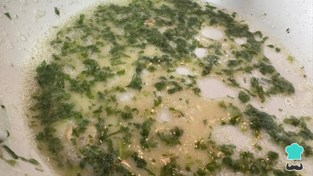 Corta el perejil finamente con un cuchillo. Añádelo y reduce un poco hasta que se impregnen los sabores, rectifica la sazón.