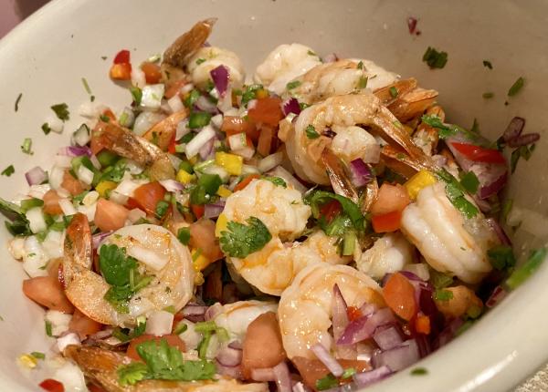 Preparas los camarones adobados con ajo molido y unas gotitas de limon,sal y pimienta agusto en un sarten con aceite de oliva.