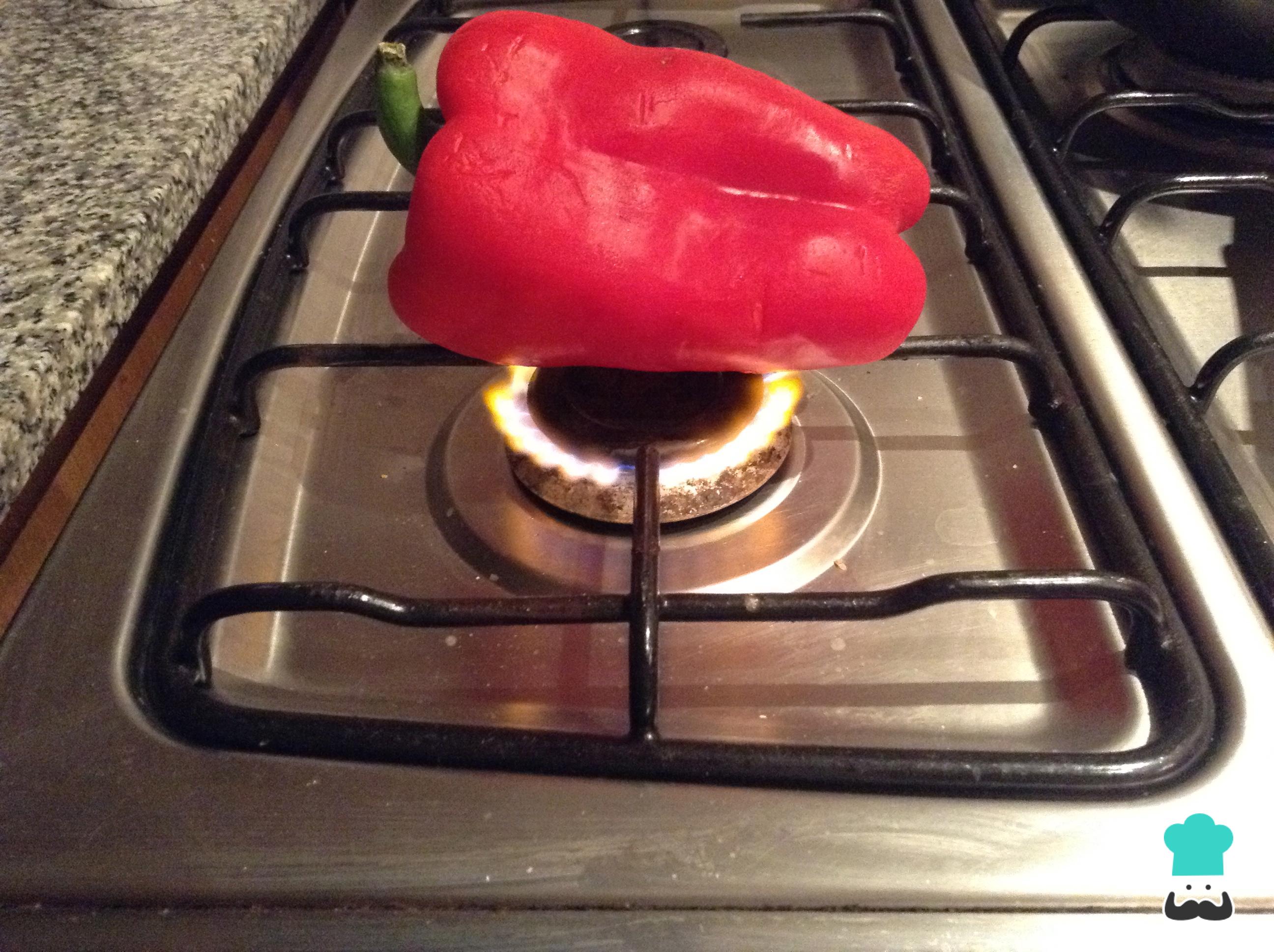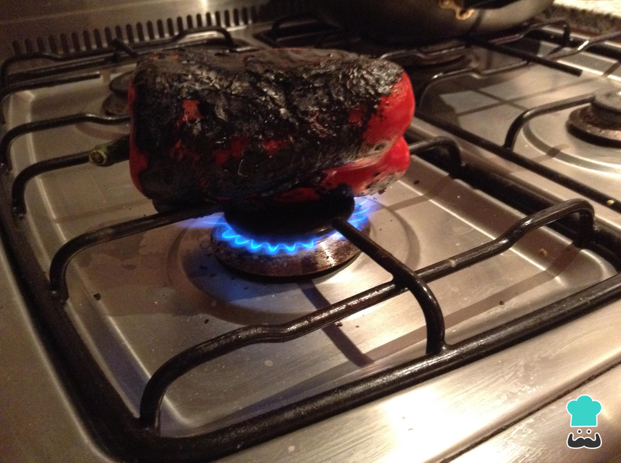 - Poner a fuego alto el pimiento rojo o pimentón directamente al fuego.