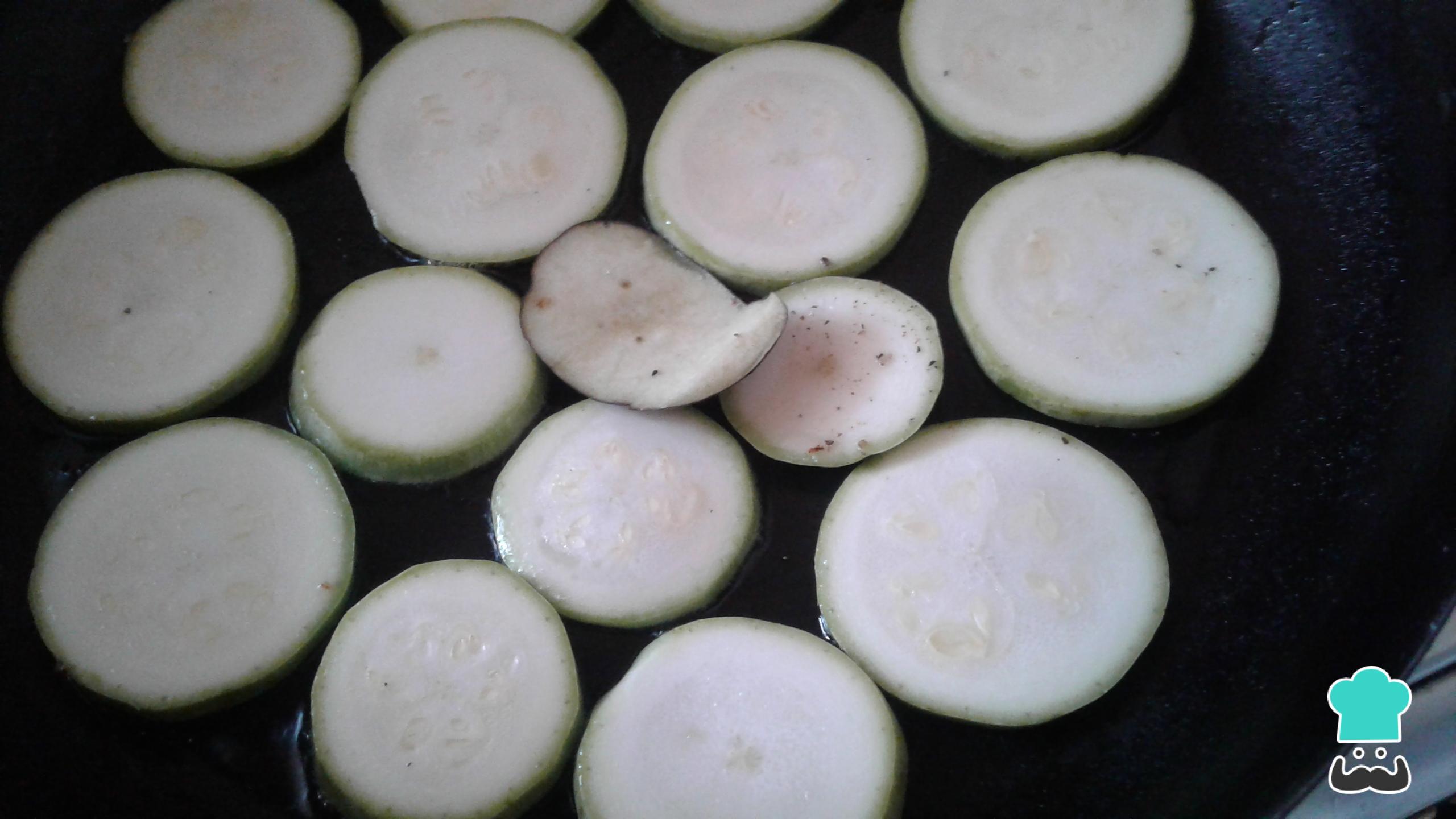 En una sartén con un poco de aceite cocina la berenjena y el zucchini por los dos lados hasta que se doren por completo.
