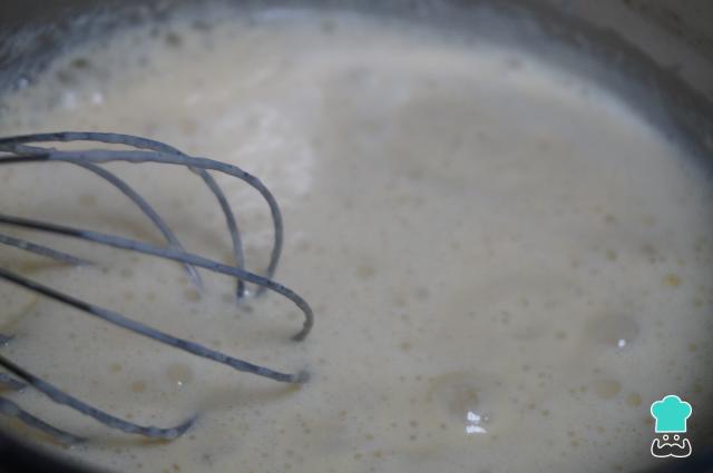 Sigue removiendo con las varillas a fuego bajo hasta que empiece a espesar y forme una textura similar a una crema. A continuación, apaga el fuego.