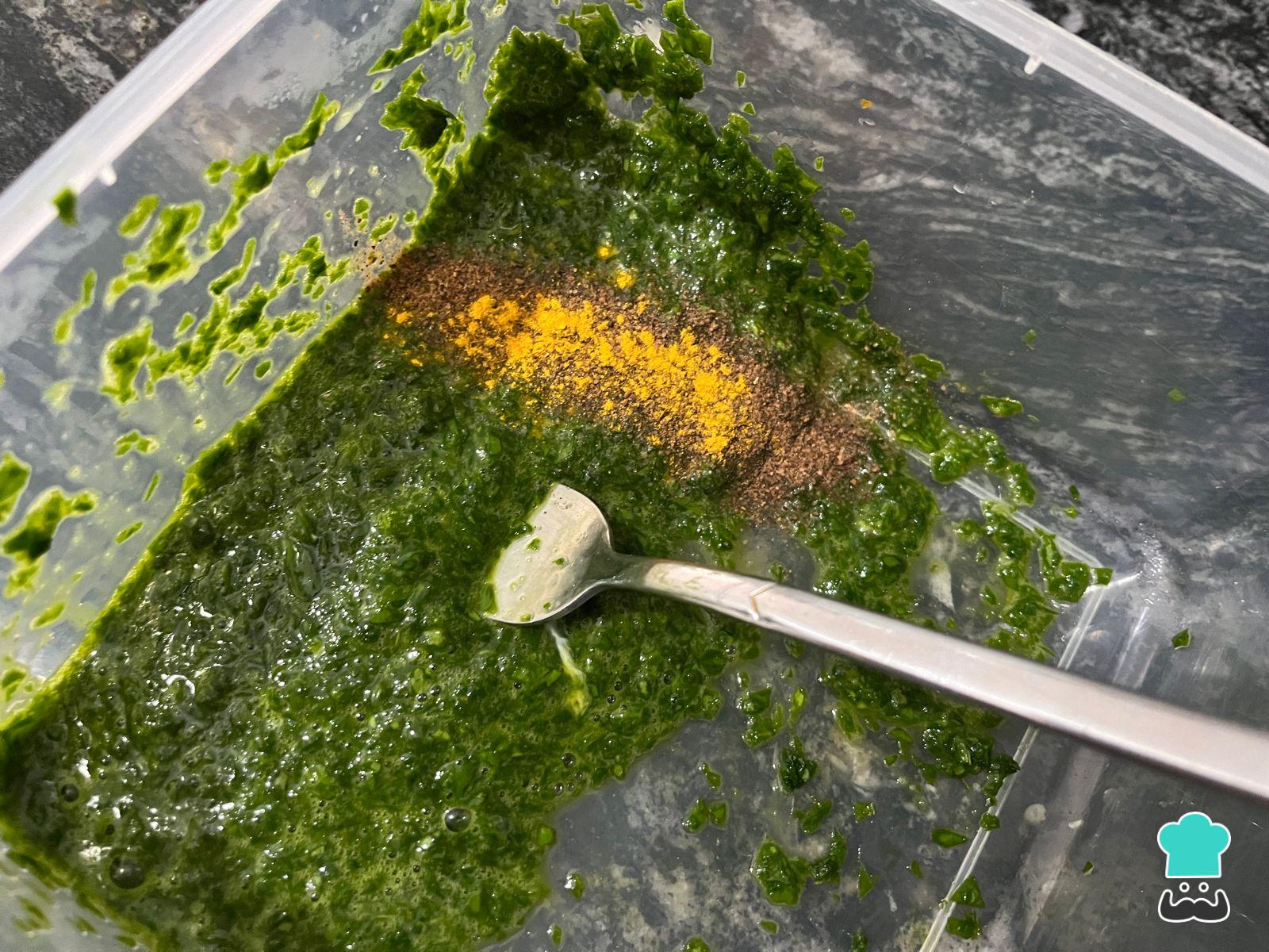 Mezcla la espinaca con el huevo y los condimentos a gusto.