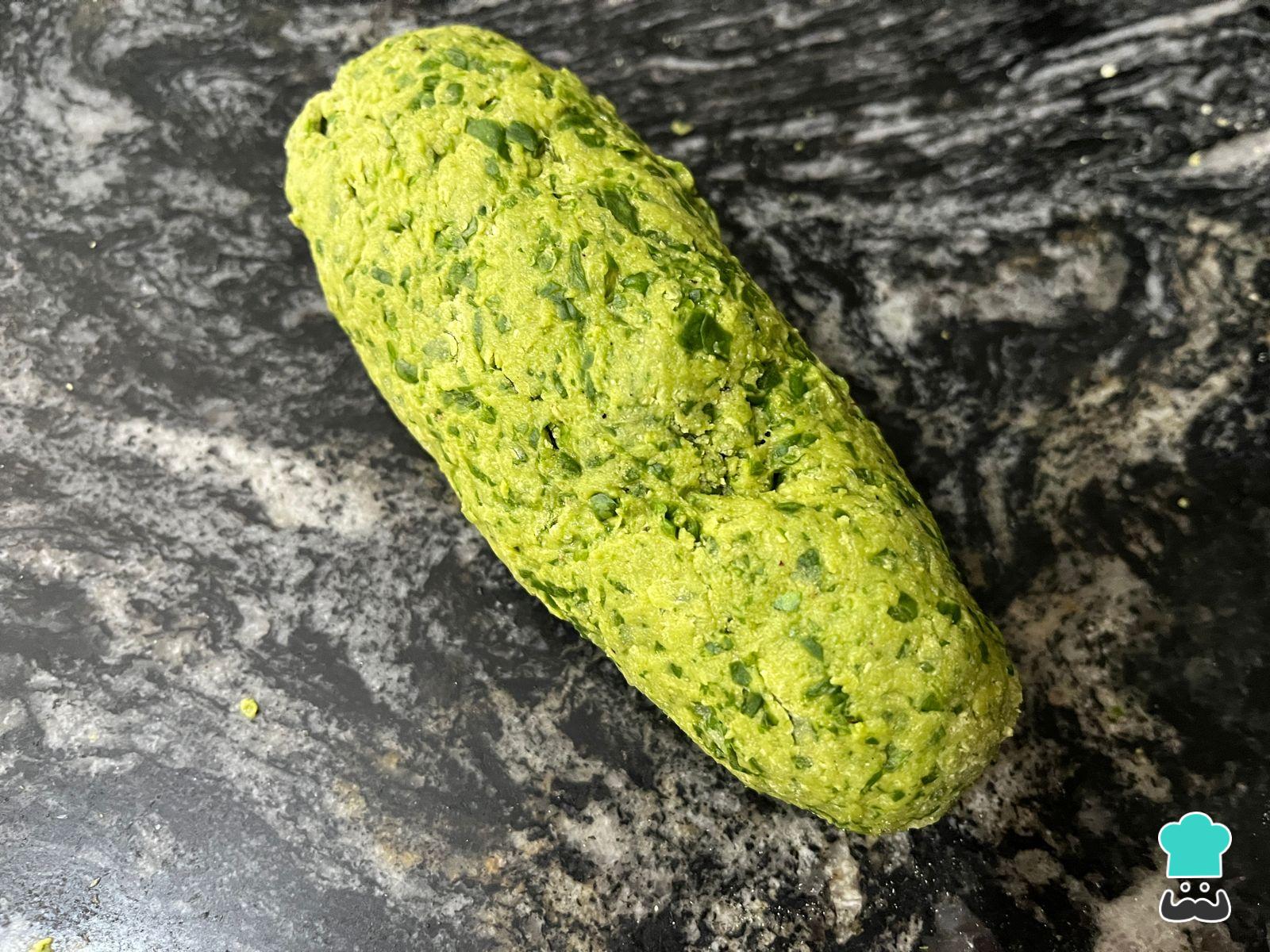 Agrega poco a poco la harina y, sin amasar, integra para formar una masa. Si necesitas más harina, puedes agregarla, asegúrate de usar lo mínimo e indispensable, así tus ñoquis de espinaca sin papa saldrán bien tiernos.