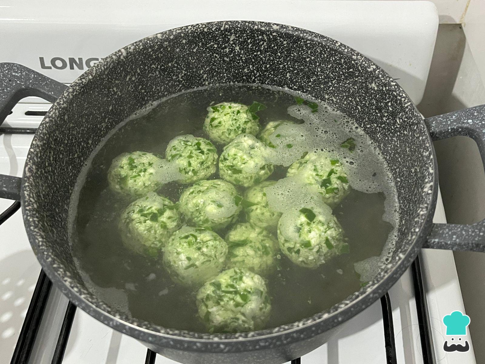 Integra bien deshaciendo cualquier grumo que pueda formarse. Con ayuda de las manos húmedas o enharinadas, para evitar que la masa se pegue, arma pelotitas de tamaño similar para que se cocinen de forma pareja.