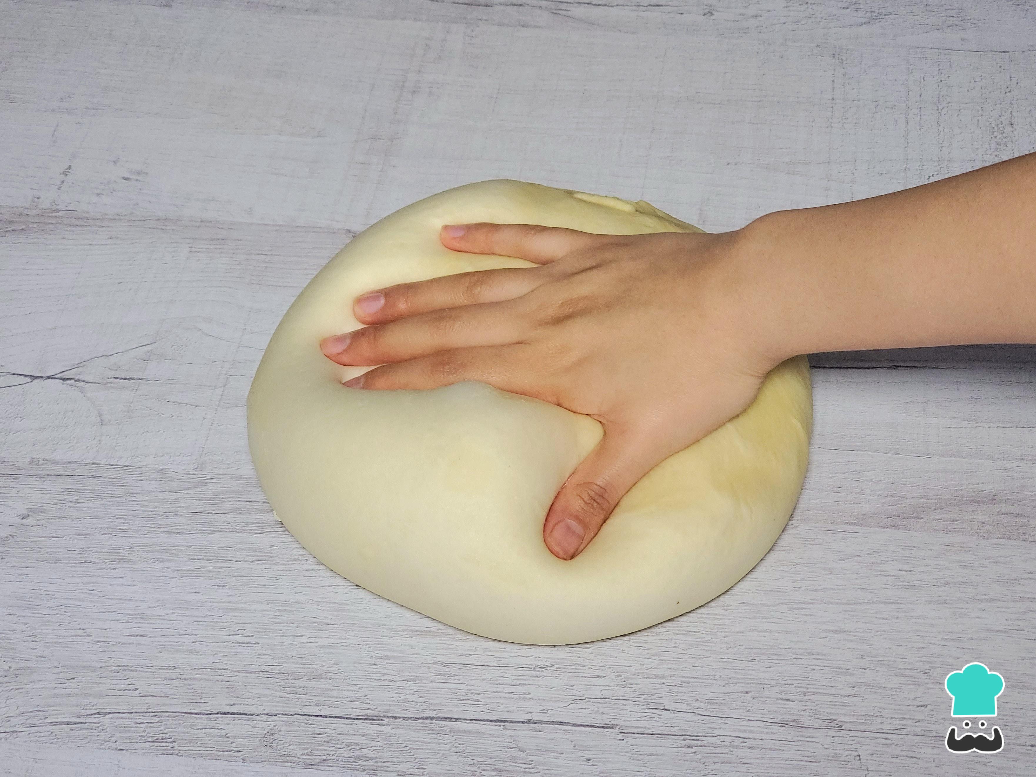Acomoda el pan sobre una placa con tapete de silicona. Cúbrelo con papel film o un paño húmedo y deja reposar por lo menos 1 hora, o hasta que duplique su volumen. Luego, barniza con el huevo batido y hornea a 165 °C durante aproximadamente 40 minutos, o hasta que la superficie y la base estén bien doradas.