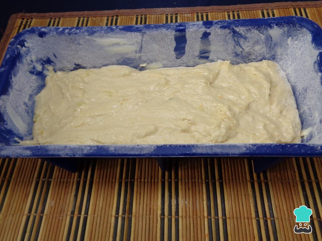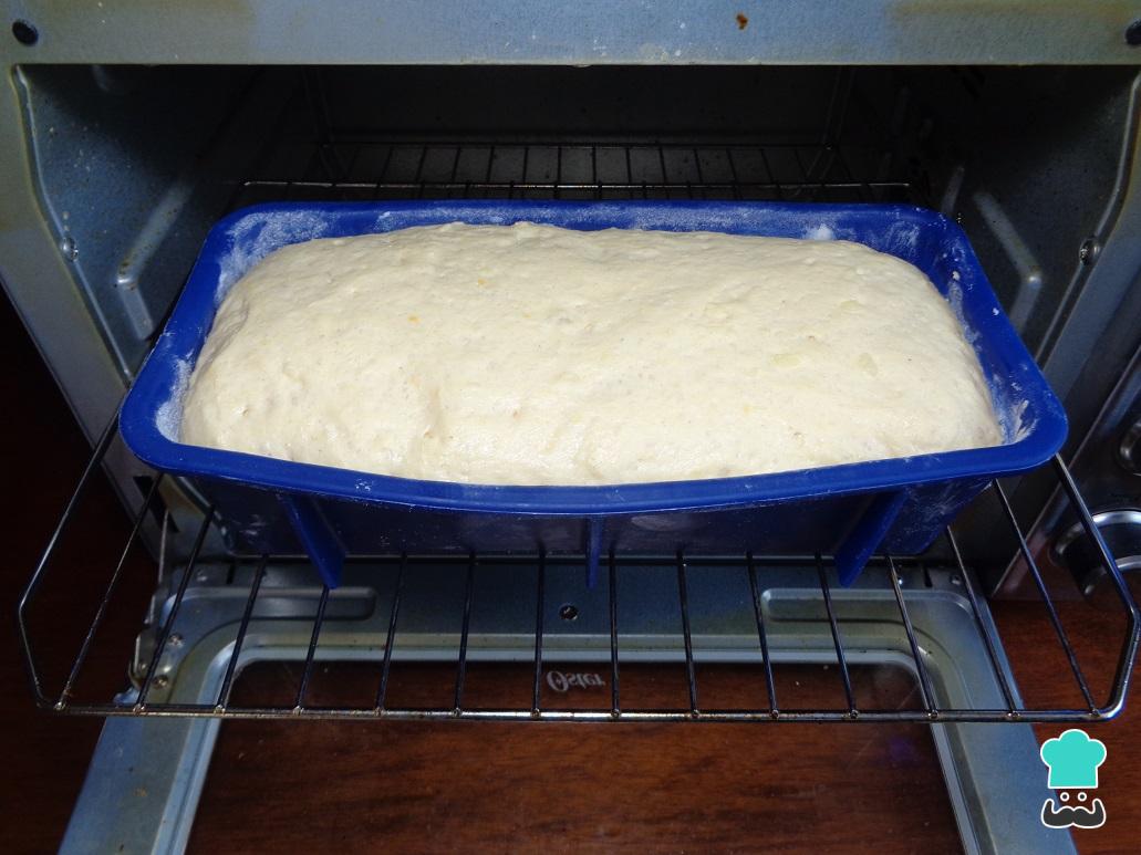 Ahora tomamos nuestro molde para hornear y lo engrasamos con la margarina, lo enharinamos con un poco de harina sin gluten y le vertemos la mezcla de pan de patata sin gluten también que acabamos de formar. Dejamos que repose en el molde hasta que doble su tamaño.