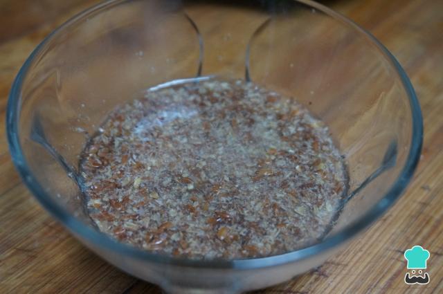 Para empezar con la receta del pan keto sin huevo, primero añade las semillas de lino con el agua.