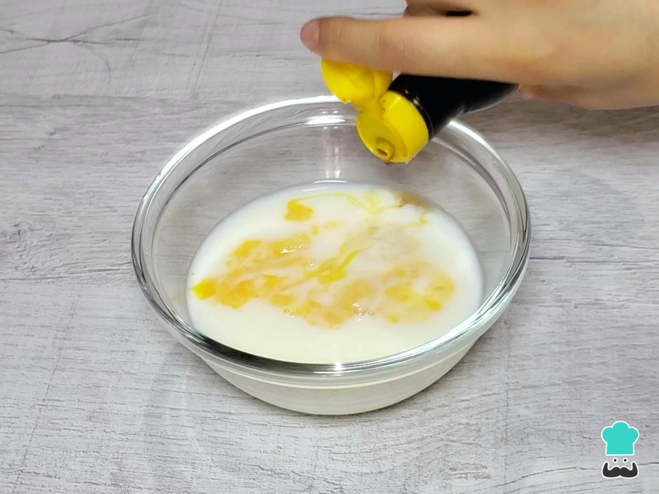 Como primer paso bate en un recipiente el huevo junto con la leche, la esencia de vainilla y el azúcar. Mejor aún, reemplaza el azúcar por un edulcorante más amigable para el organismo, como Stevia o fruto del monje.