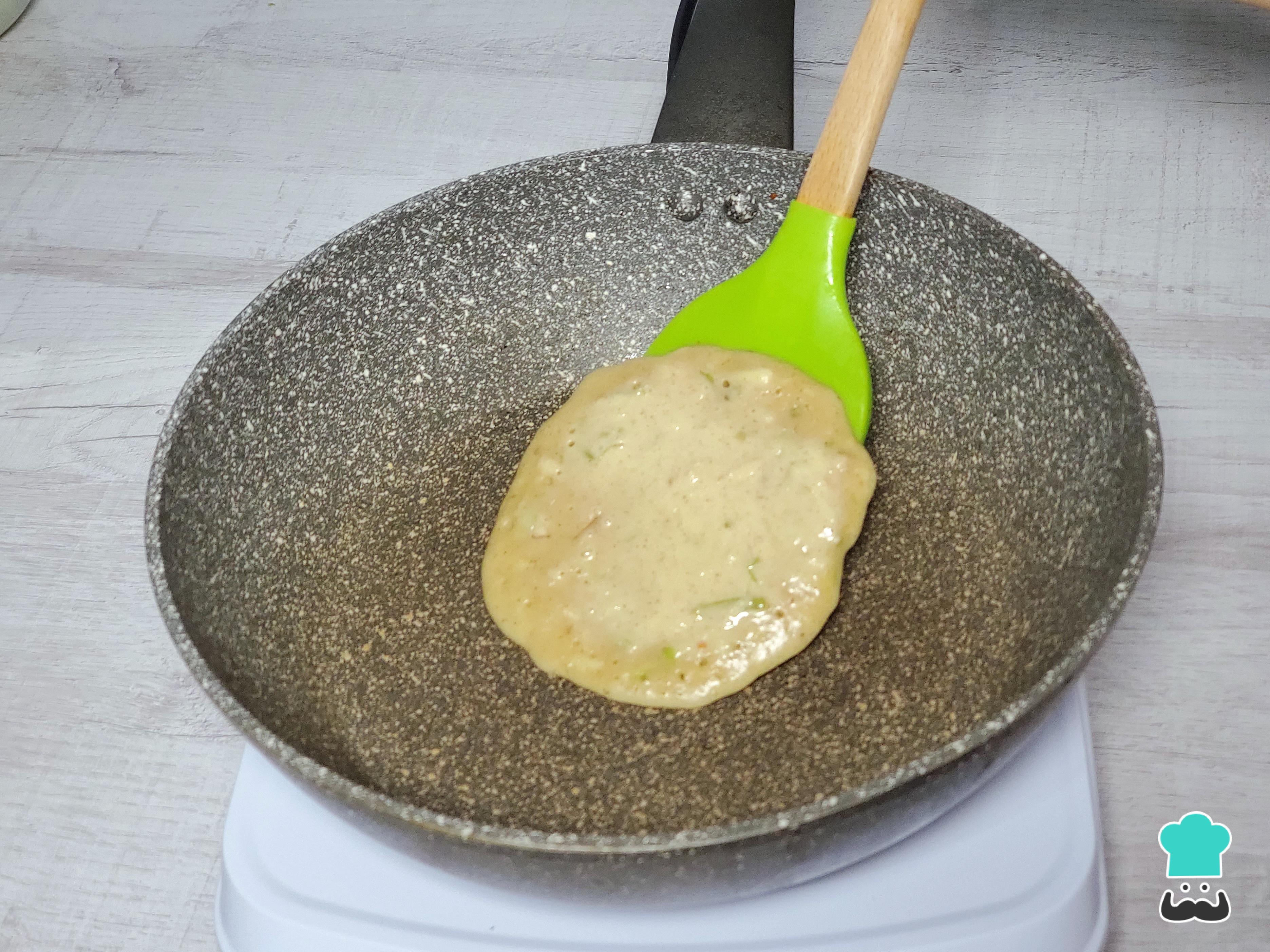 Cocina hasta que se formen burbujas en la superficie y la base esté dorada, entonces dale la vuelta y cocina unos minutos más.
