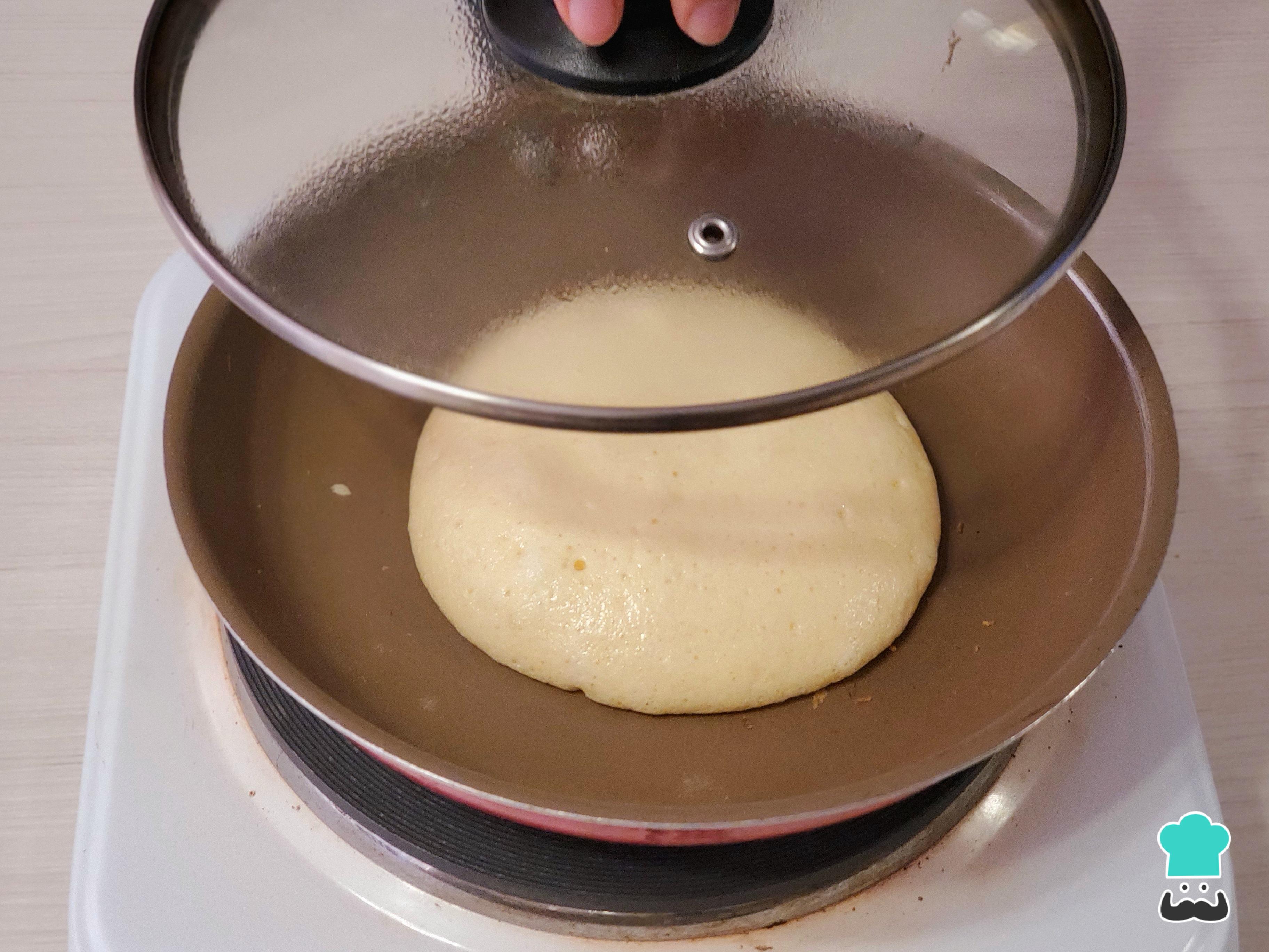 Cumplido el tiempo, dale la vuelta al pancake, vuelve a tapar y mantenlo en fuego por los últimos 4 minutos.