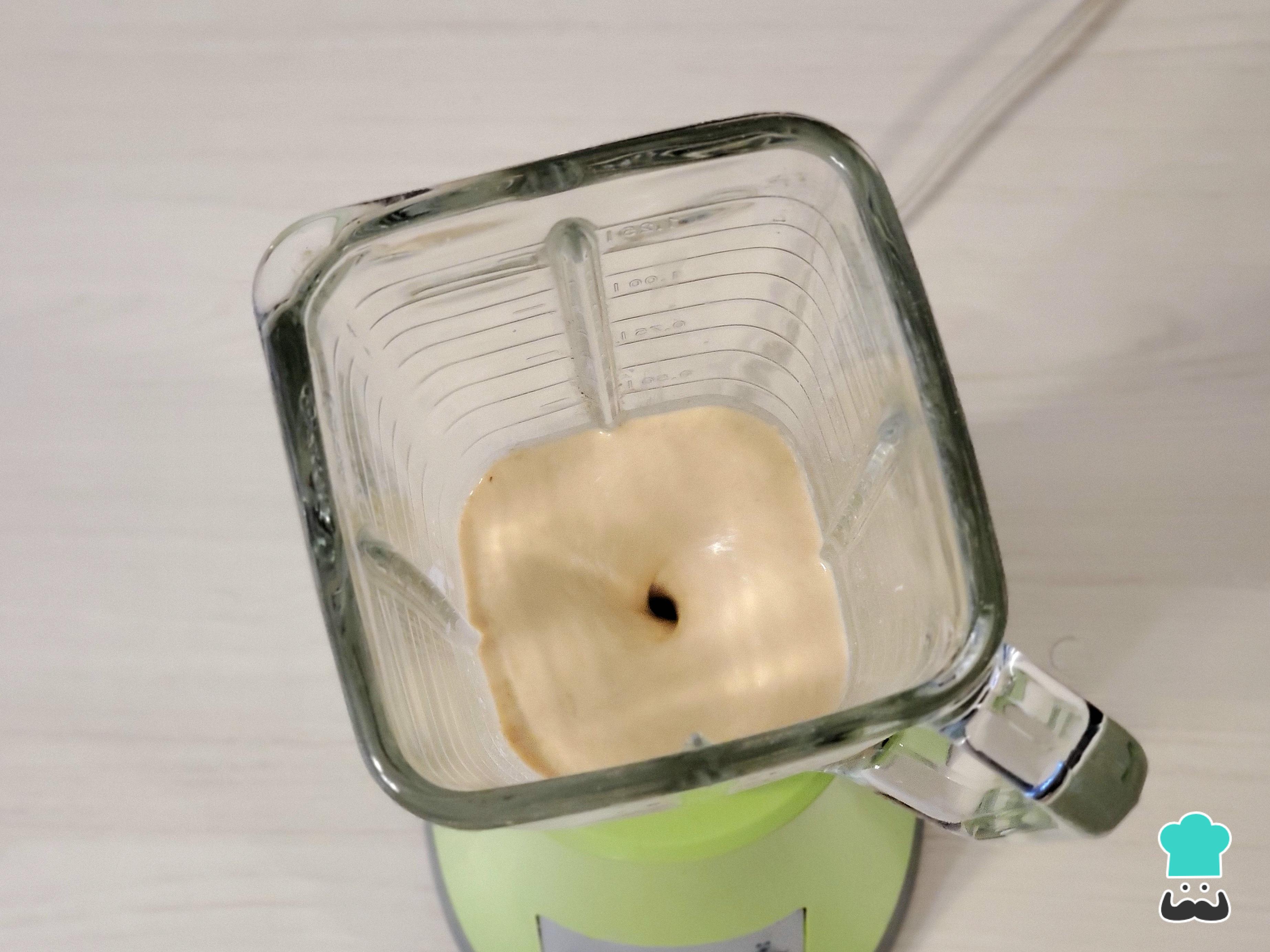 Coloca en la licuadora y tritura a máxima velocidad por un par de minutos hasta que la mezcla de panqueques y plátano esté homogénea. Durante este proceso, raspa las paredes para evitar que queden grumos.