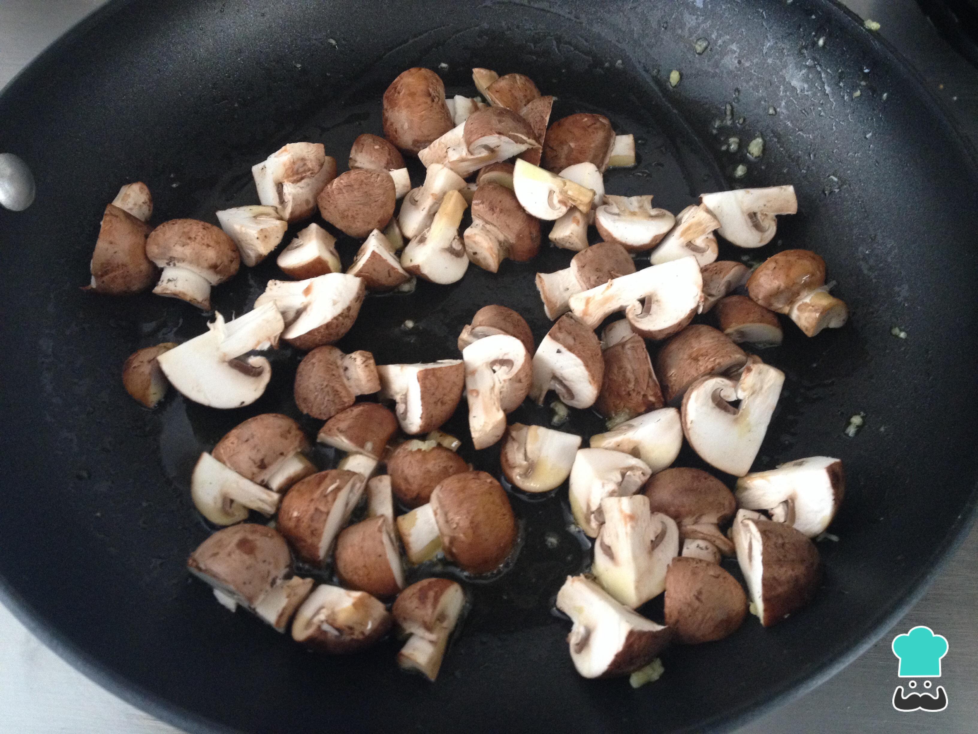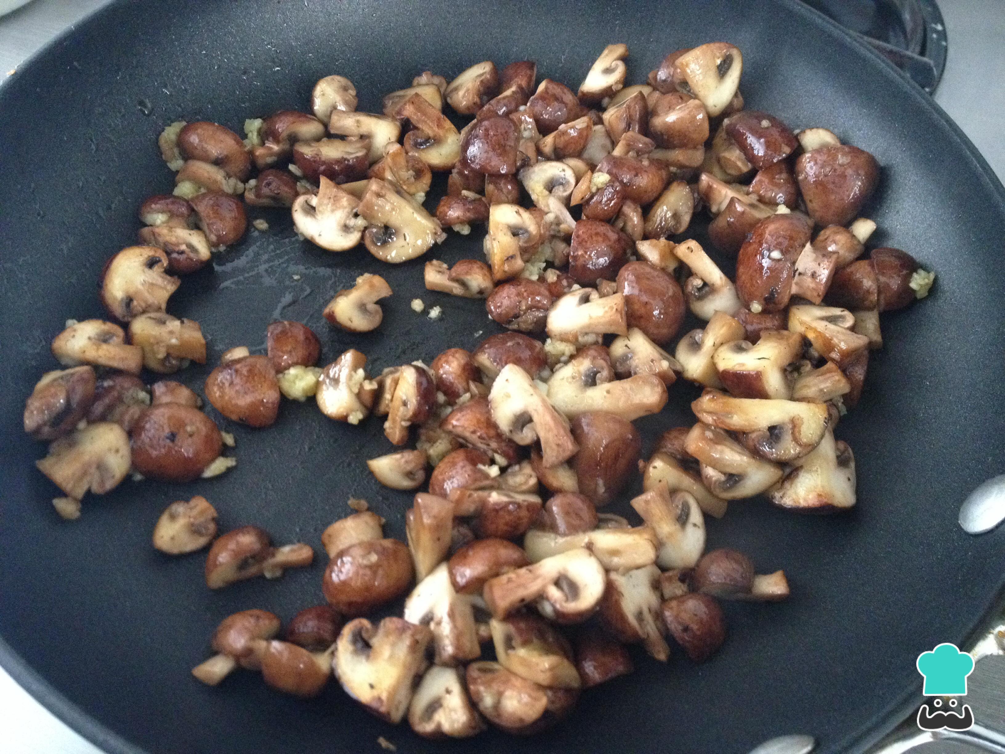 Retirar el ajo y reservar, agregar los champiñones cortados en cuartos y saltear con un poco de sal.