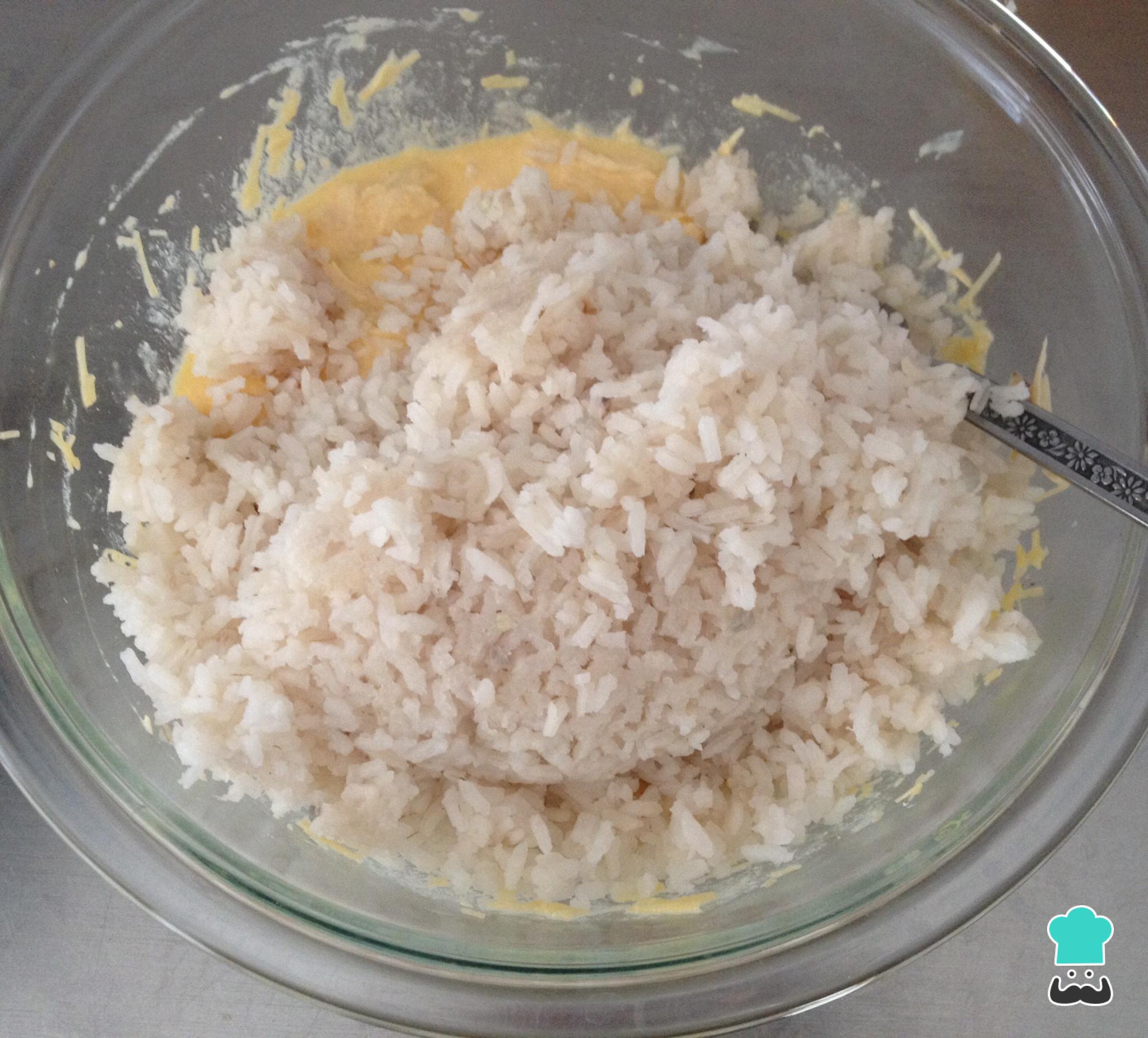 Alistar todos los ingredientes para estar torta de arroz salada. Ten en cuenta que puedes aprovechar el arroz que te haya sobrado de otra receta o hacer directamente un arroz blanco fácil.