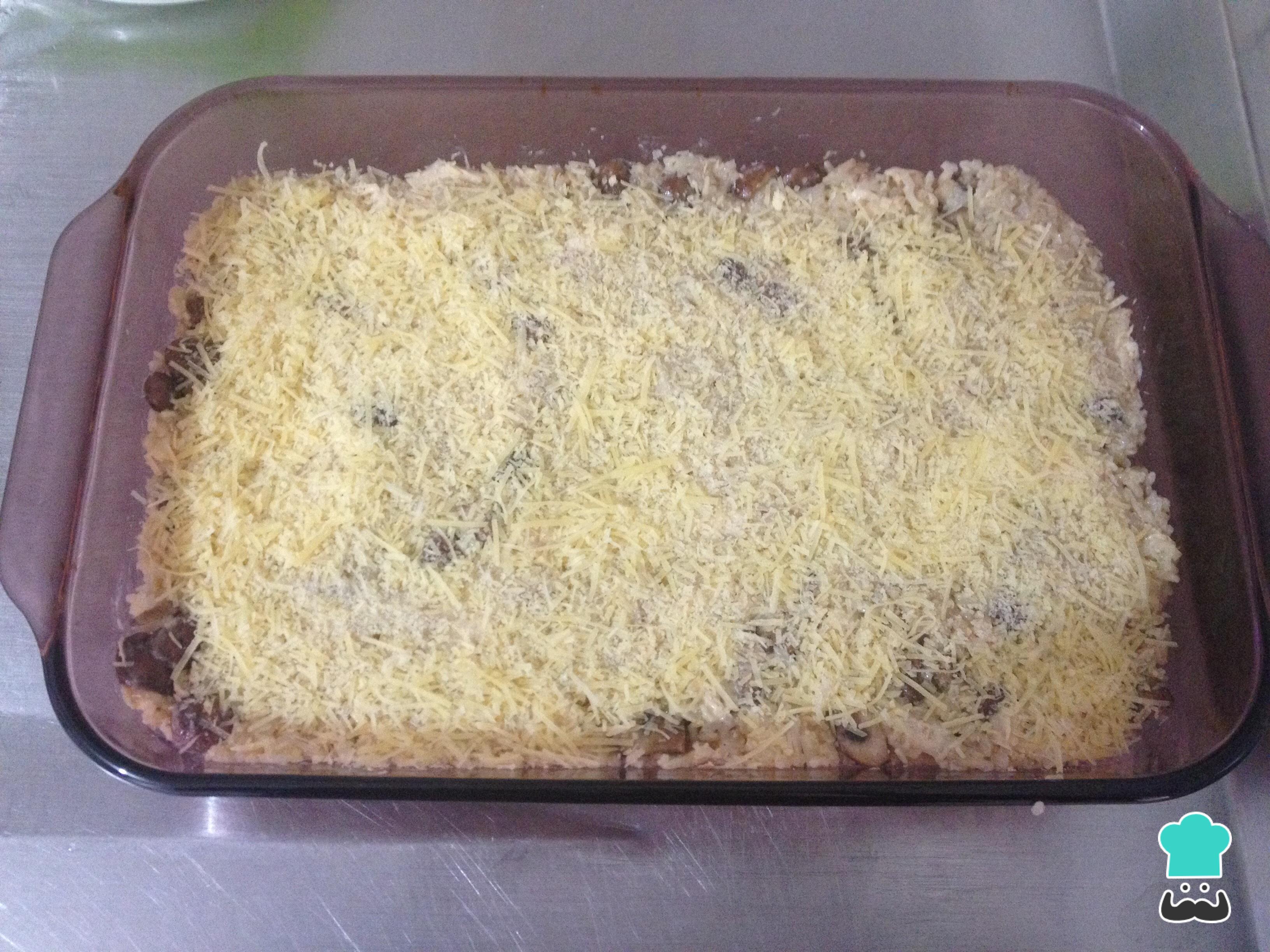 Cómo hacer Pastel de arroz con pollo y champiñones:
