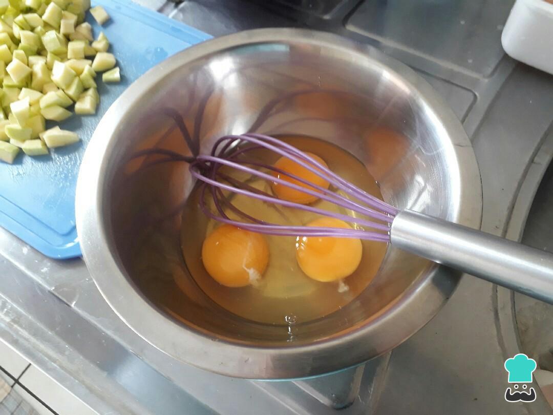 En un recipiente bate los 3 huevos hasta que estén espumosos.
