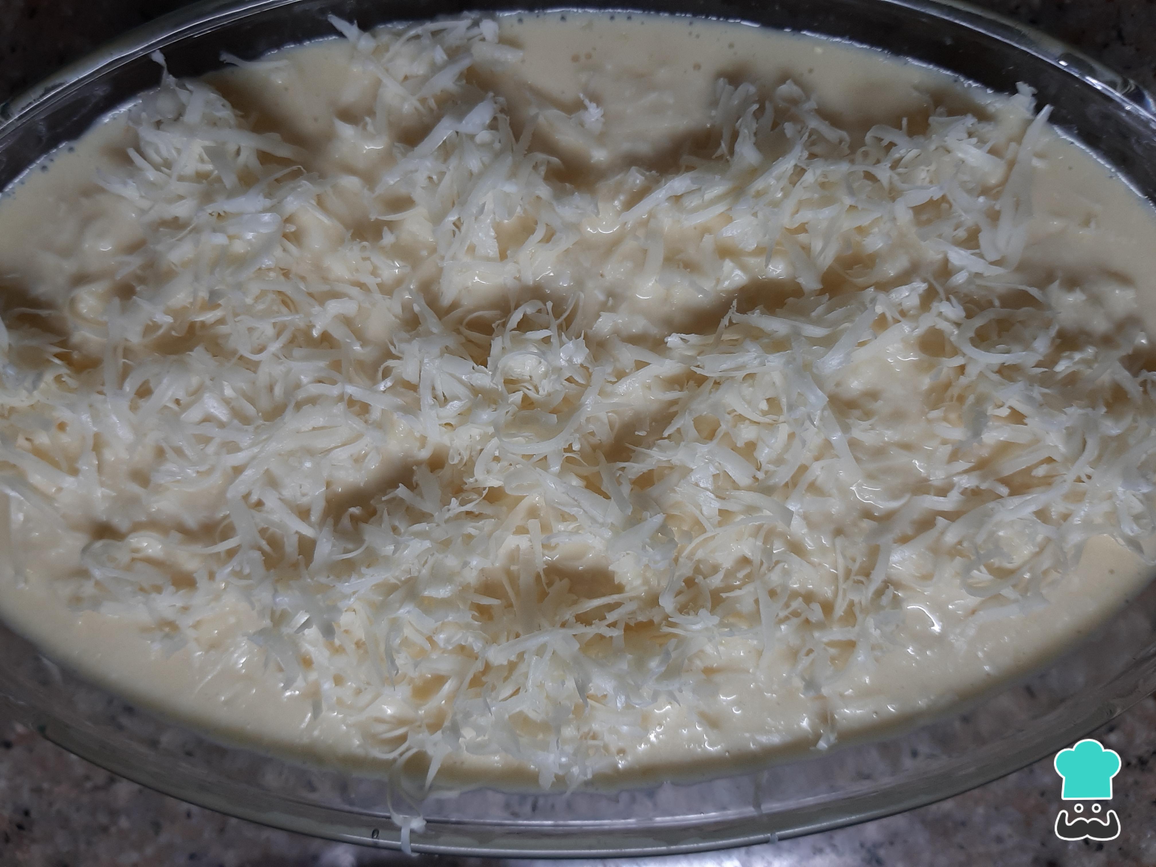Esparce mantequilla en una fuente y vierte la mezcla. En la parte superior esparce el queso rallado.