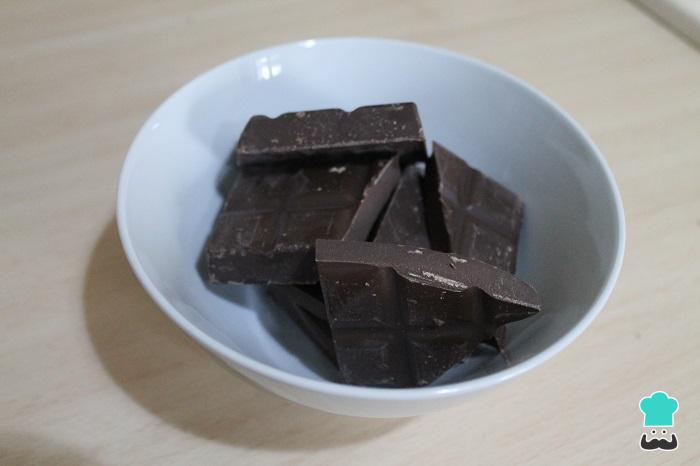 Para hacer nuestro pastel húmedo de chocolate, primero debemos trocear el chocolate para hacer el bizcocho y derretir poco a poco en el microondas, mientras vamos removiendo cada vez que lo saquemos. Reservamos.