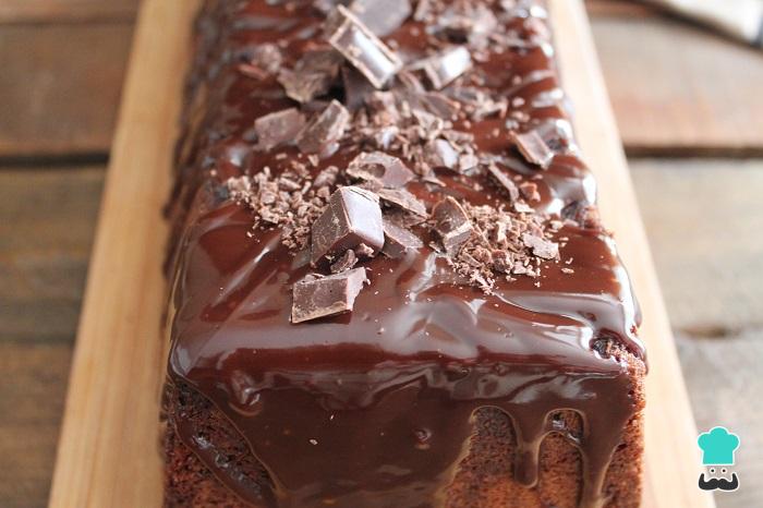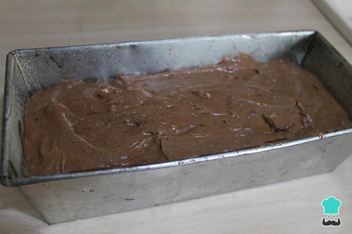 Engrasamos bien un molde de plum cake de unos 26 cm de largo y vertemos la masa del pastel húmedo de chocolate en él. Nivelamos la superficie y horneamos el bizcocho a 180 ºC (170 ºC con aire) durante 40 minutos, o hasta que al pinchar un palillo en el interior, este salga libre de masa.