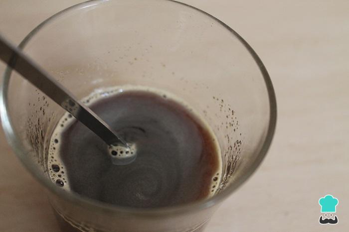 Mientras se hornea el pastel de chocolate, haremos el sirope de la siguiente manera: calentar el café largo en el microondas, sacar e incorporar el azúcar. Mezclamos bien y dejamos que se enfríe.