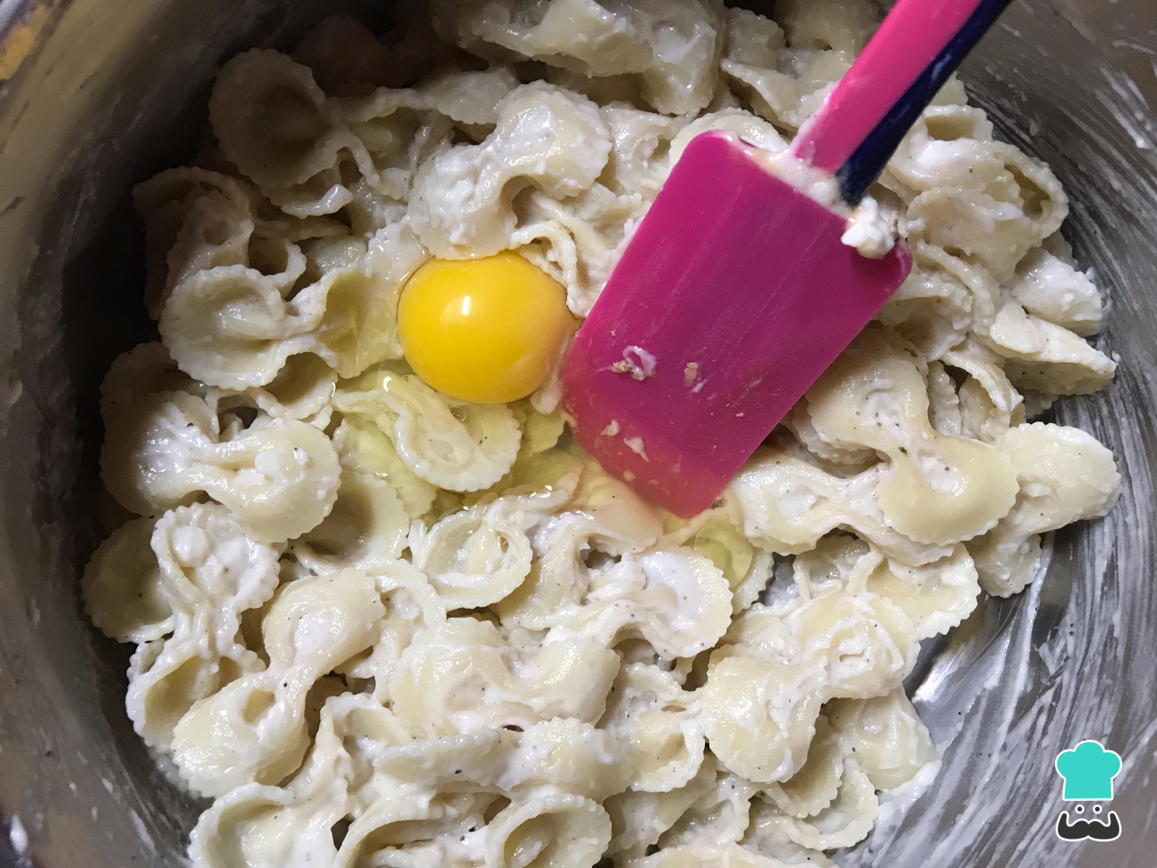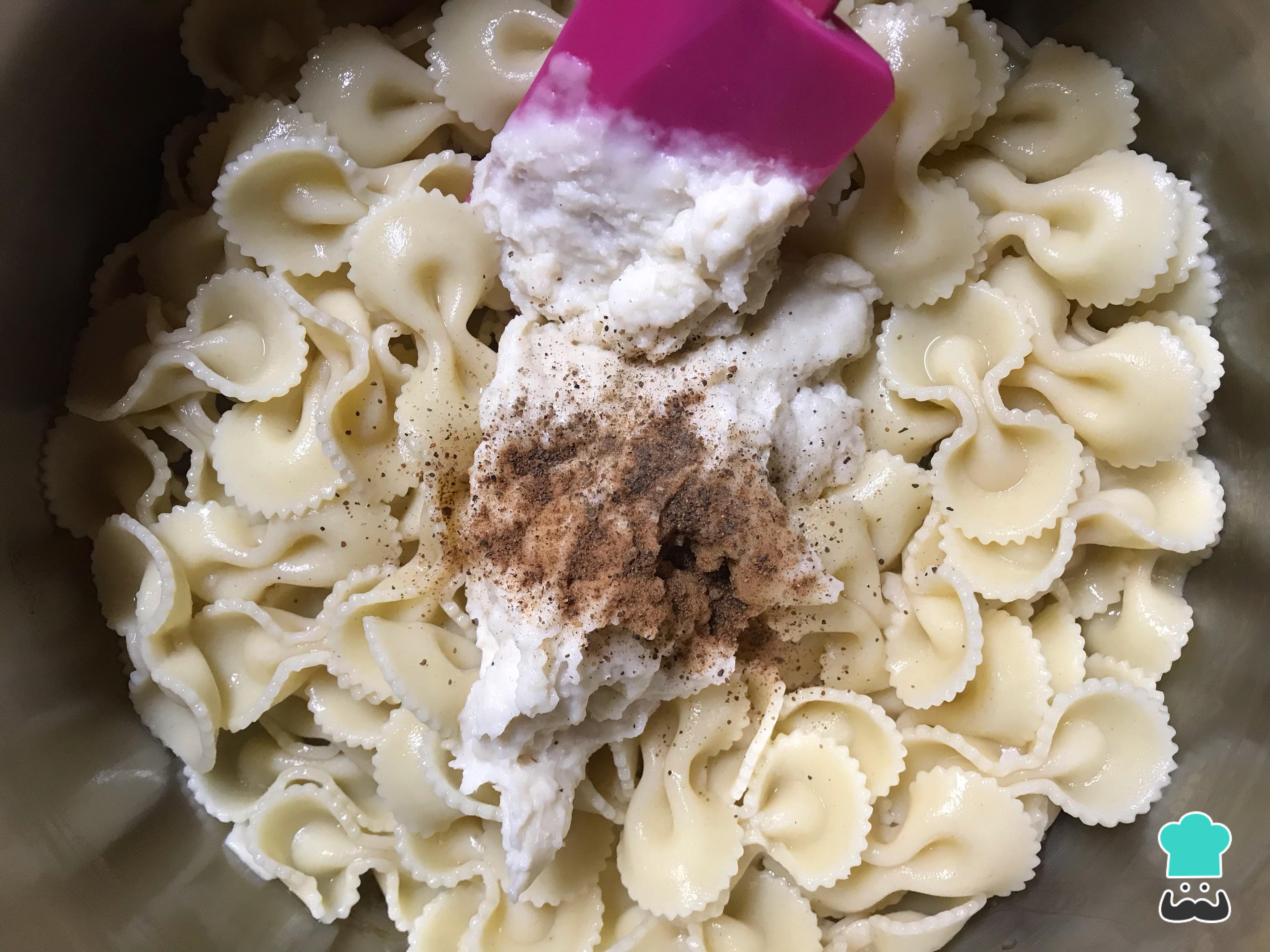 Mezcla la salsa blanca que has preparado con la pasta cocida y los condimentos.