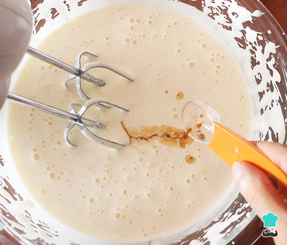 Cuando el batido este pálido y haya duplicado su volumen agregar la vainilla. Seguir batiendo.