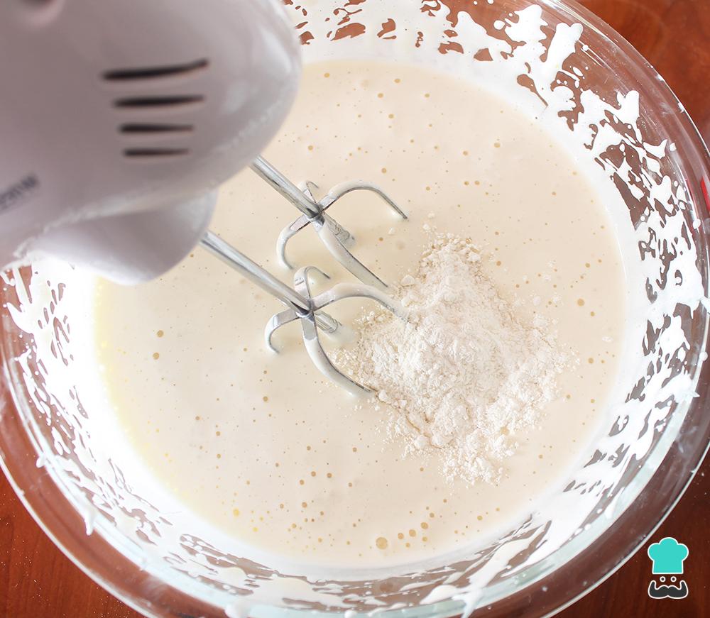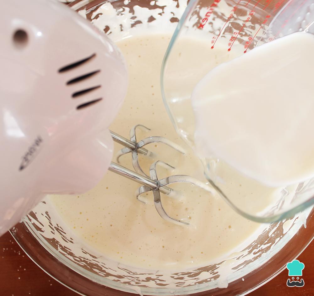 Seguir batiendo a baja velocidad mientras se terminan de agregar la leche y la harina.