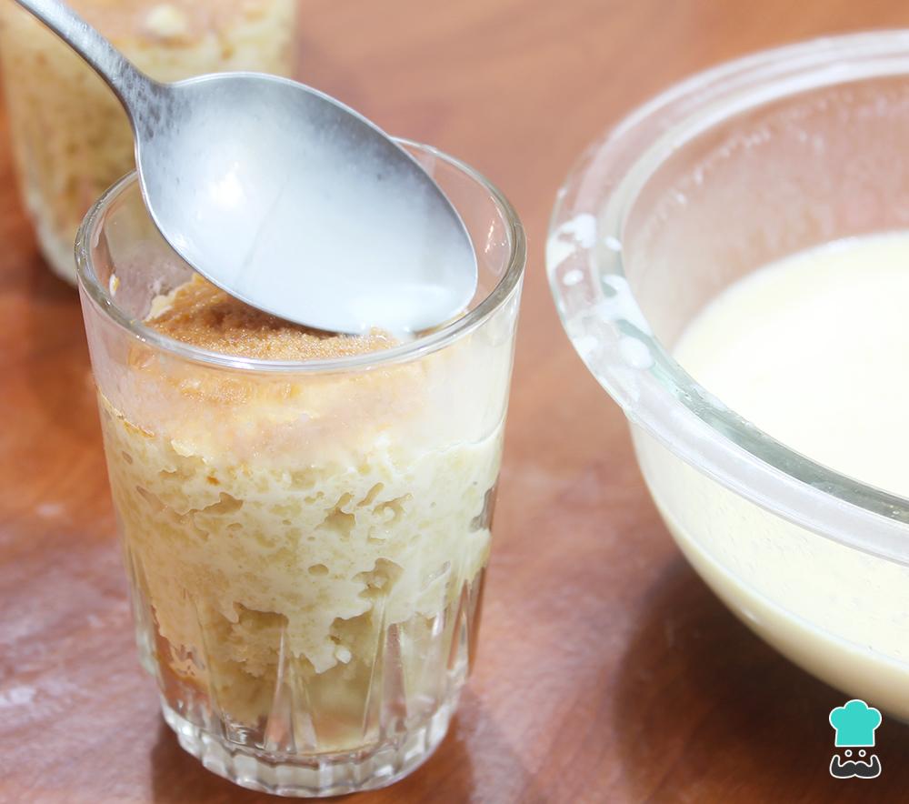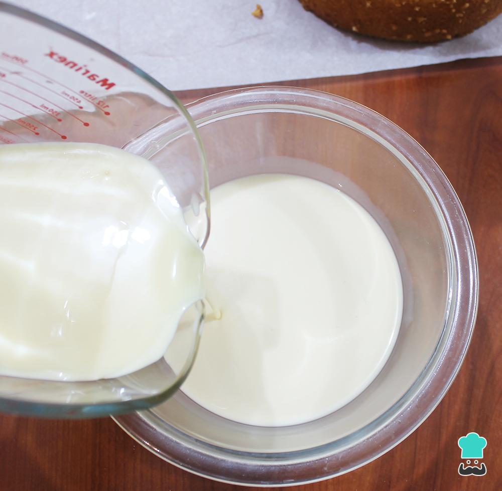 Mientras enfría el bizcochuelo, mezclar las leches del baño en un tazón y calentar en el microondas por 1 o 2 minutos.