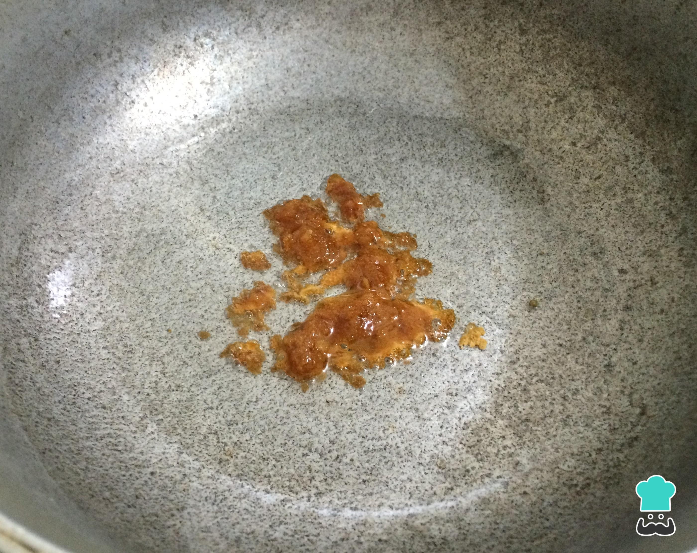 En una olla con aceite agregar el papelón (panela) rallado, mezclar durante un minuto a fuego bajo.
