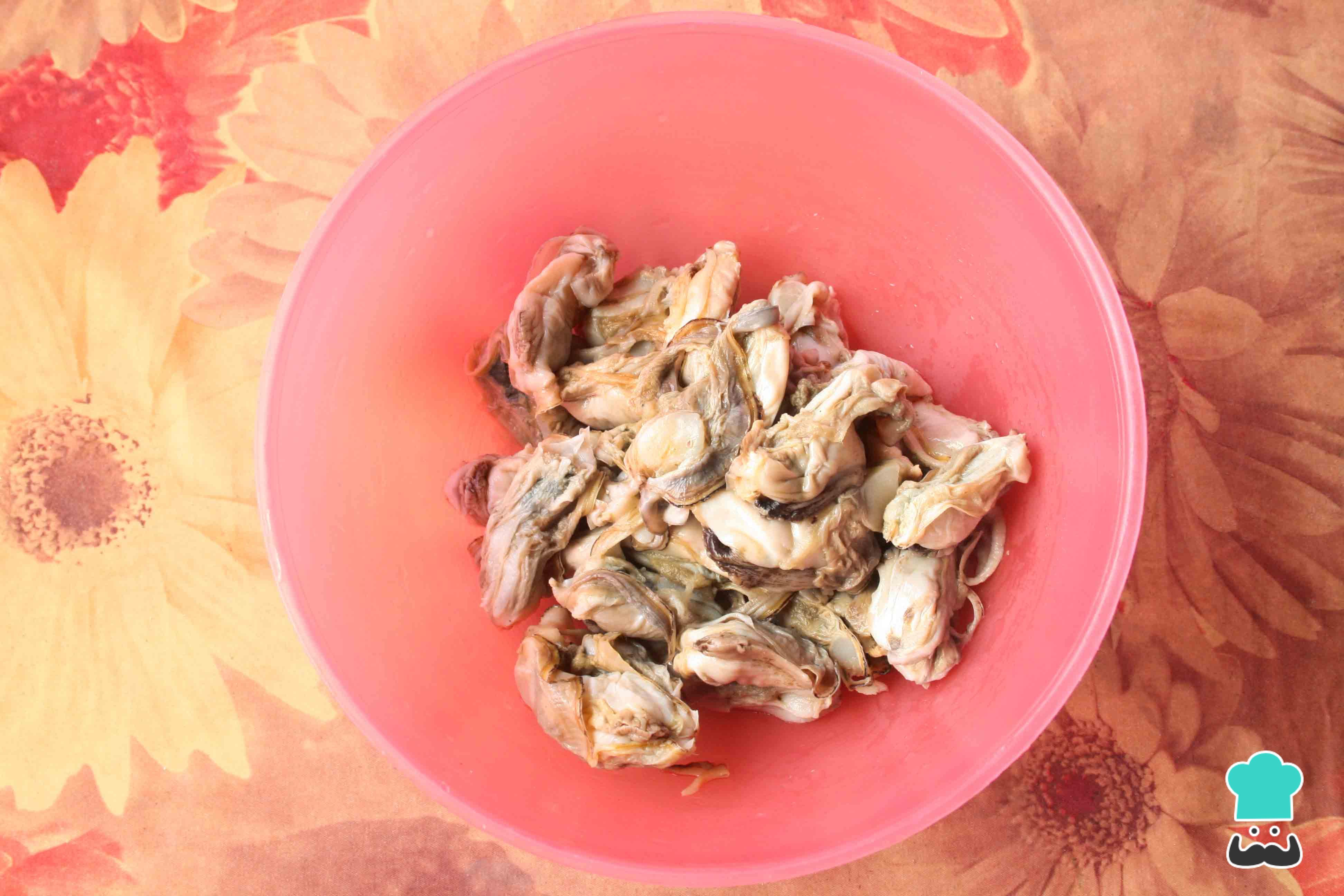 Cuando veas que las pepitonas se han abierto y su textura es blanda, retíralas del fuego. Esto ocurre en 20 o 30 minutos aproximadamente. Evita excederte en la cocción pues luego su textura se siente chiclosa. Escurre las pepitonas y lávalas de nuevo, para confirmar que están limpias. Reserva.