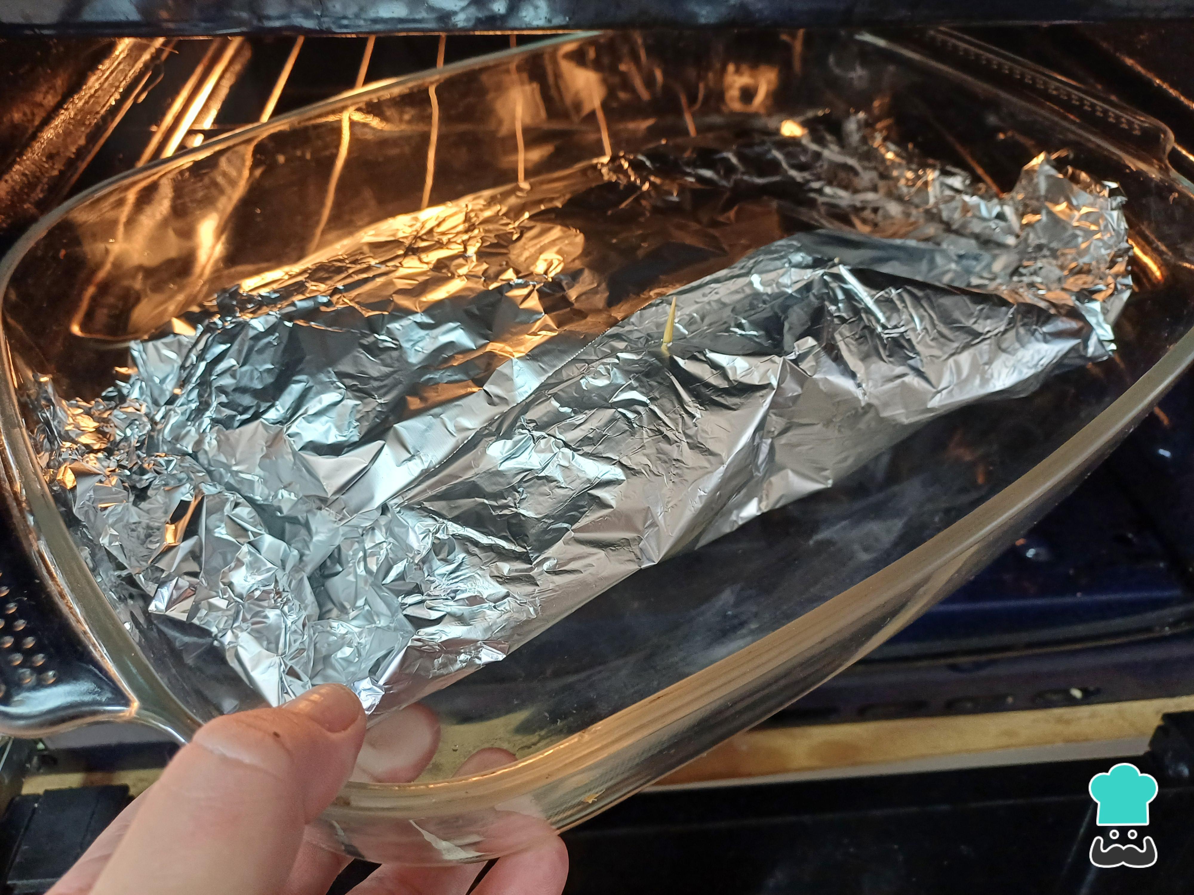 Cubre el pescado con papel de aluminio e introduce en el horno precalentado a 180 ºC durante 30 minutos.