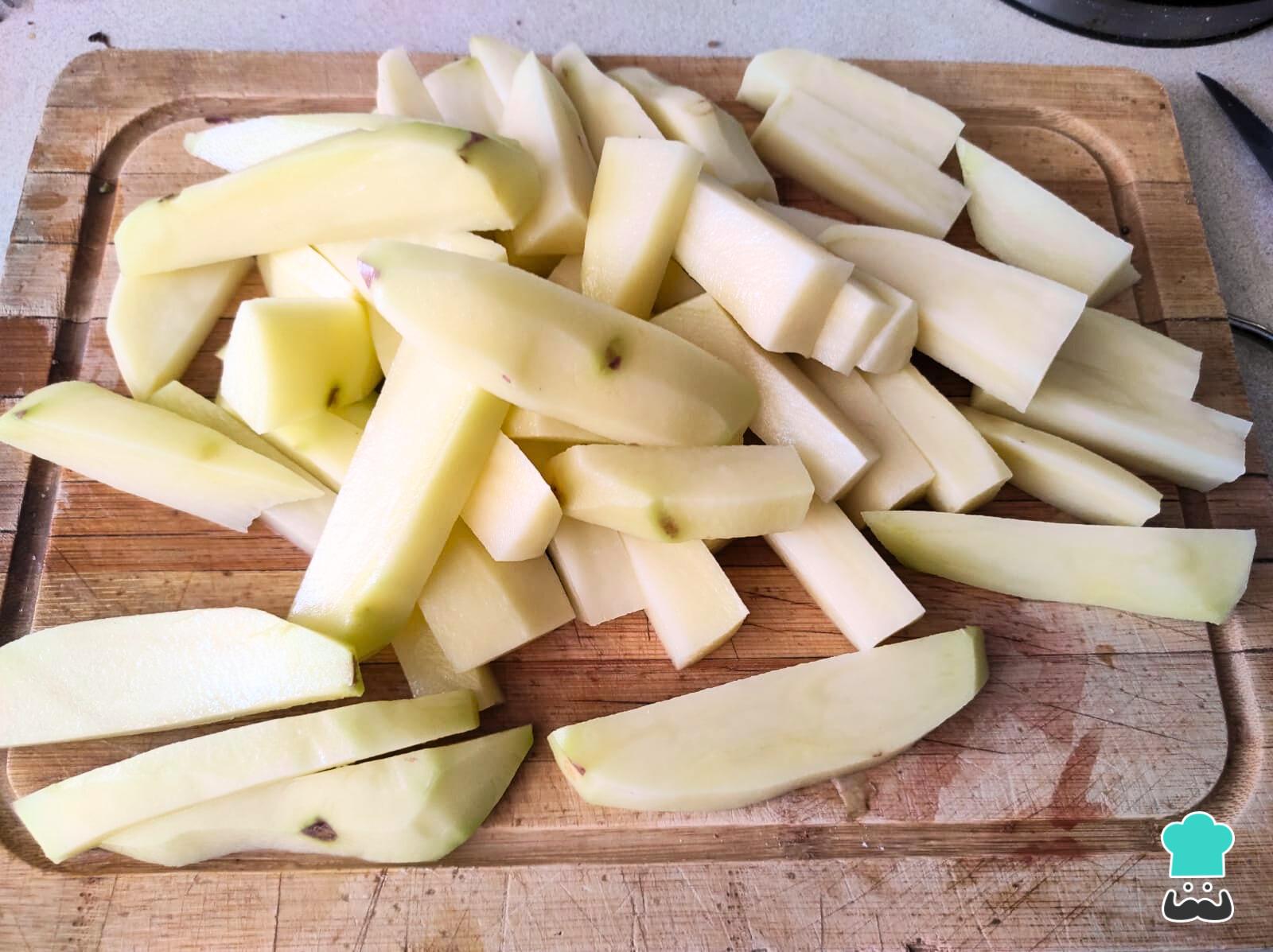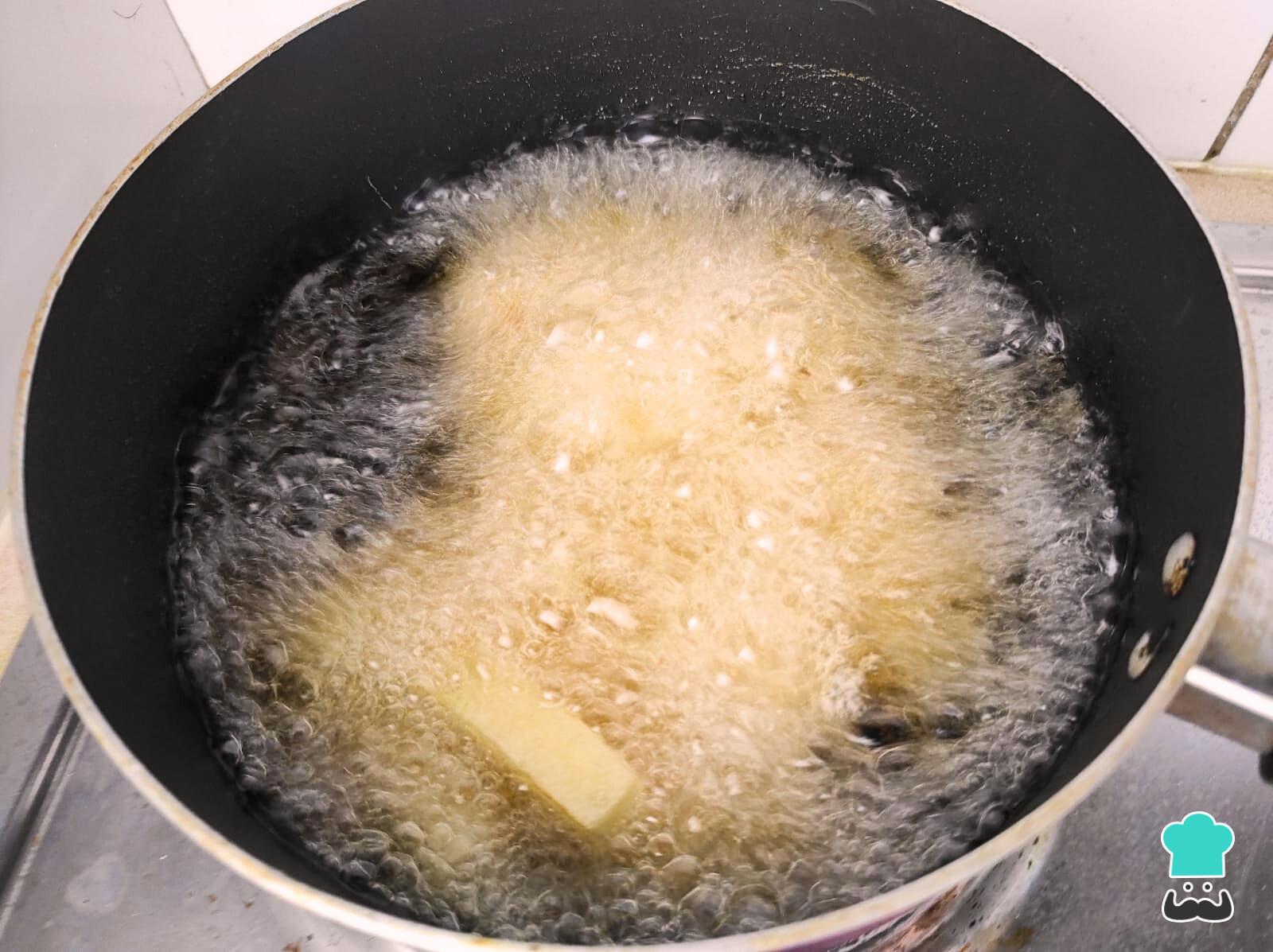 Fríe las papas por aproximadamente 4 minutos o hasta que estén cocidas y doradas.