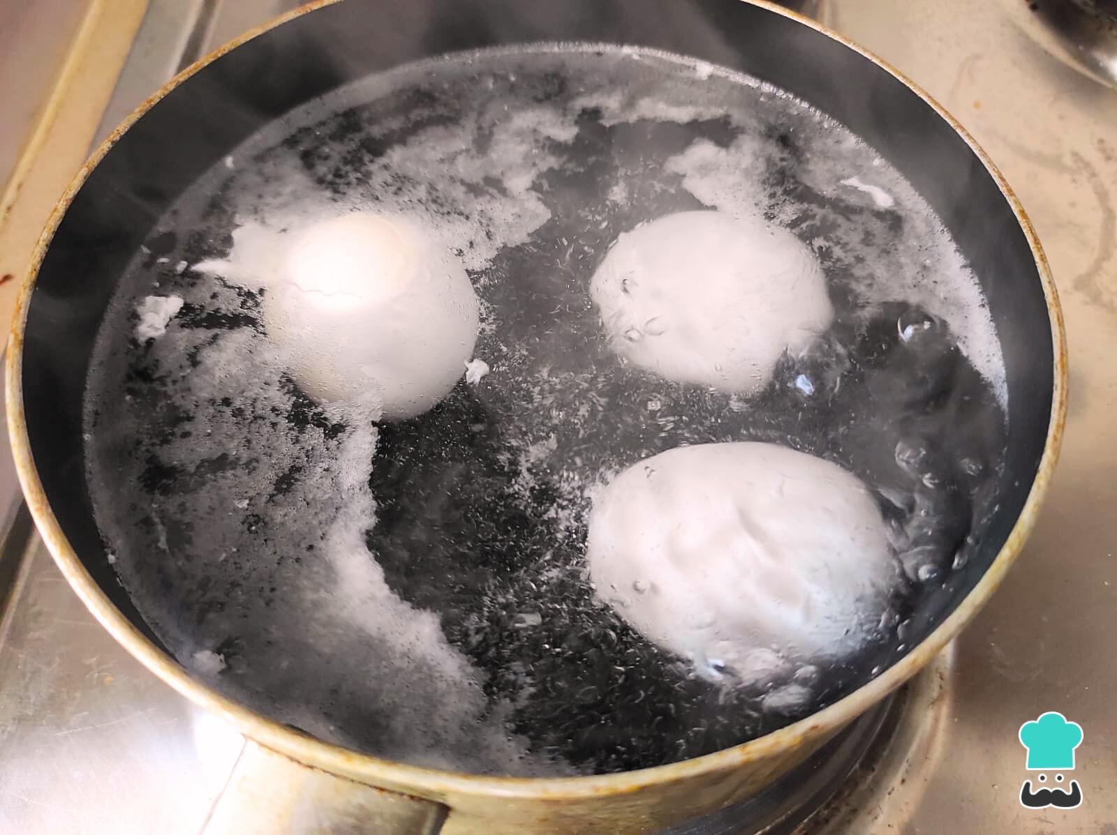 Hierve los huevos por alrededor de 10 minutos y deja enfriar antes de pelar.