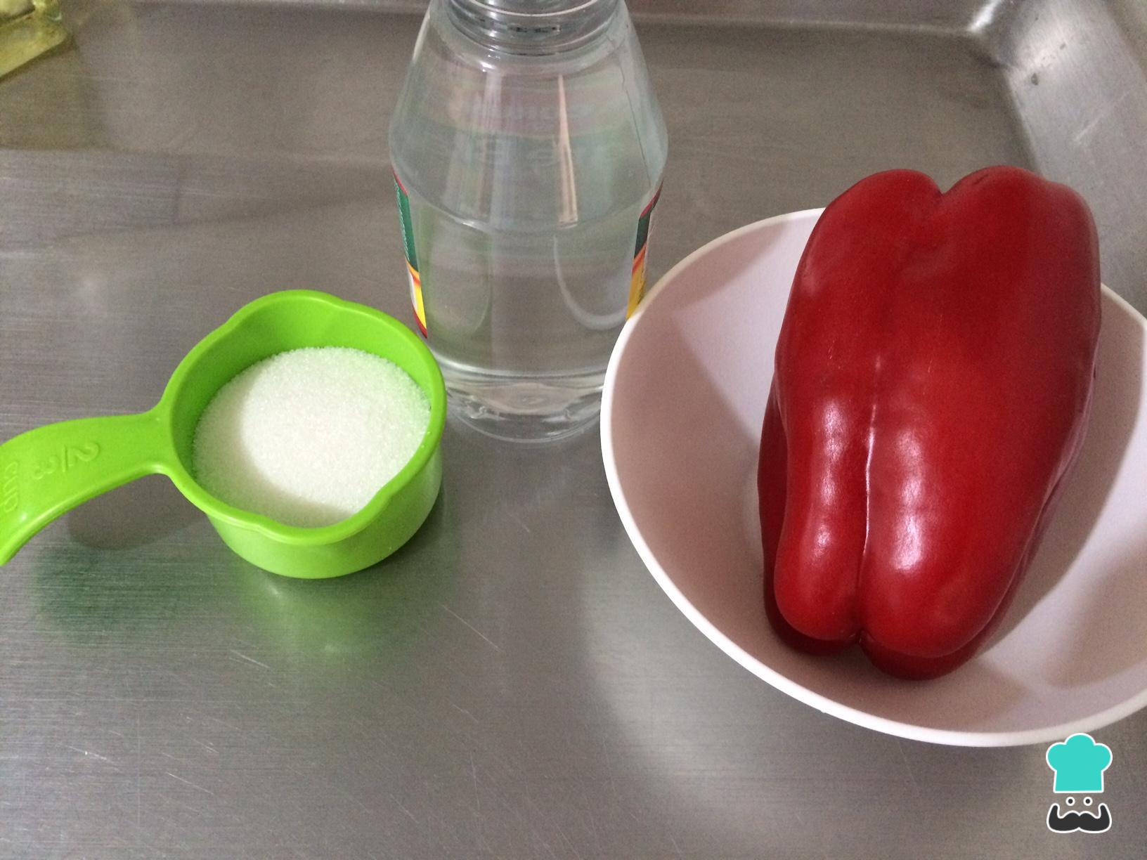 Antes de realizar este aperitivo con pimientos rojos, el primer paso es alistar todos los ingredientes. Recuerda que este aperitivo lo combinaremos con queso, nosotros utilizaremos queso crema y galletas saladas, pero puedes usar lonchas de queso mozarella y pan tostado o cualquier otra base para canapés que suelas utilizar.