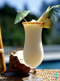 Proporción de la Piña Colada: 1 parte de crema de coco, 2 partes de ron blanco y 3 partes de jugo de piña.