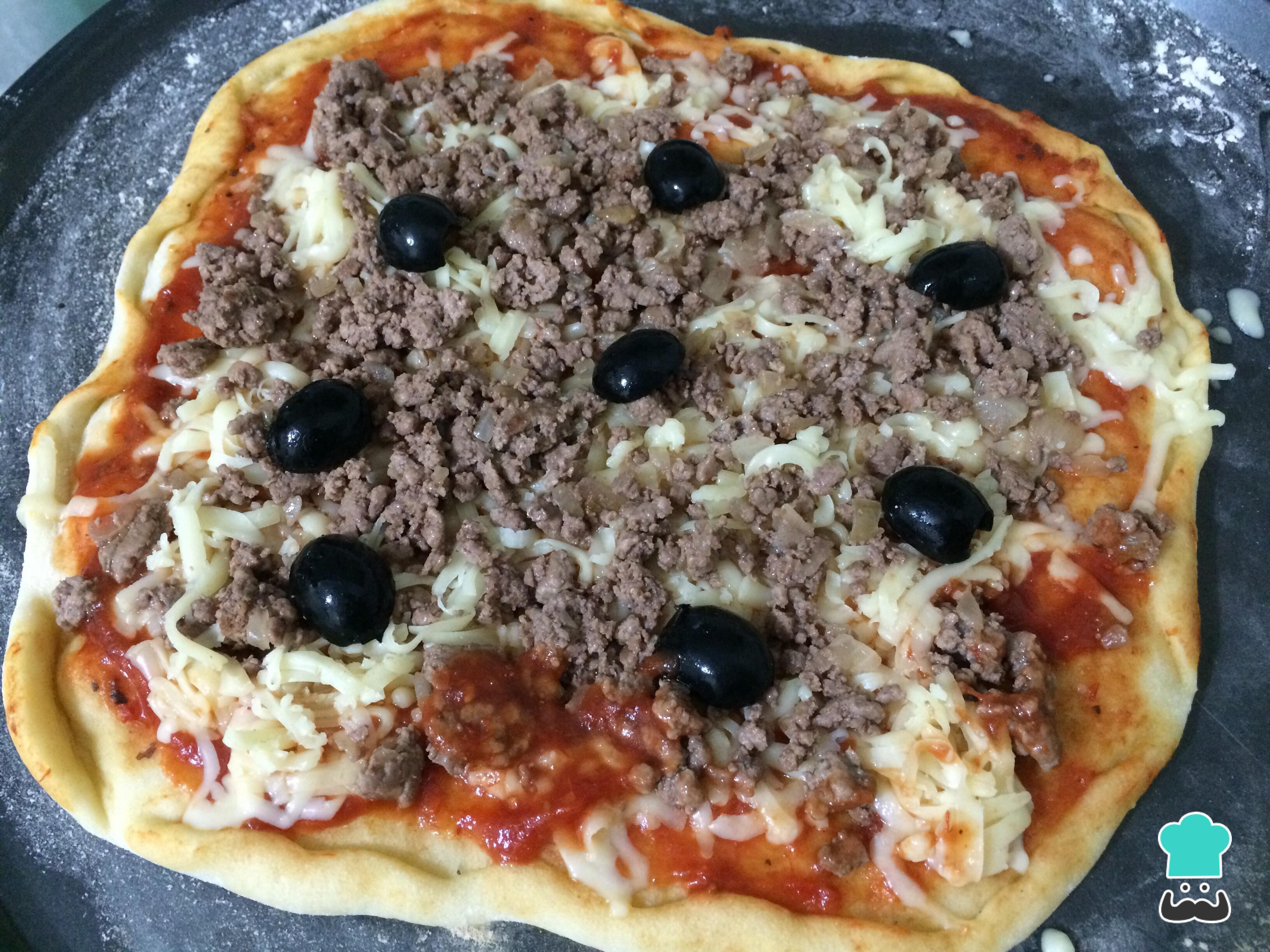 La pizza es un plato clásico de la cocina italiana, consiste en un pan plano horneado por lo general delgado elaborado con distintos ingredientes y casi siempre con queso. La receta de hoy es una deliciosa pizza boloñesa casera que contiene salsa napolitana, carne picada, queso mozzarella y aceitunas negra, perfecta para compartir con la familia.