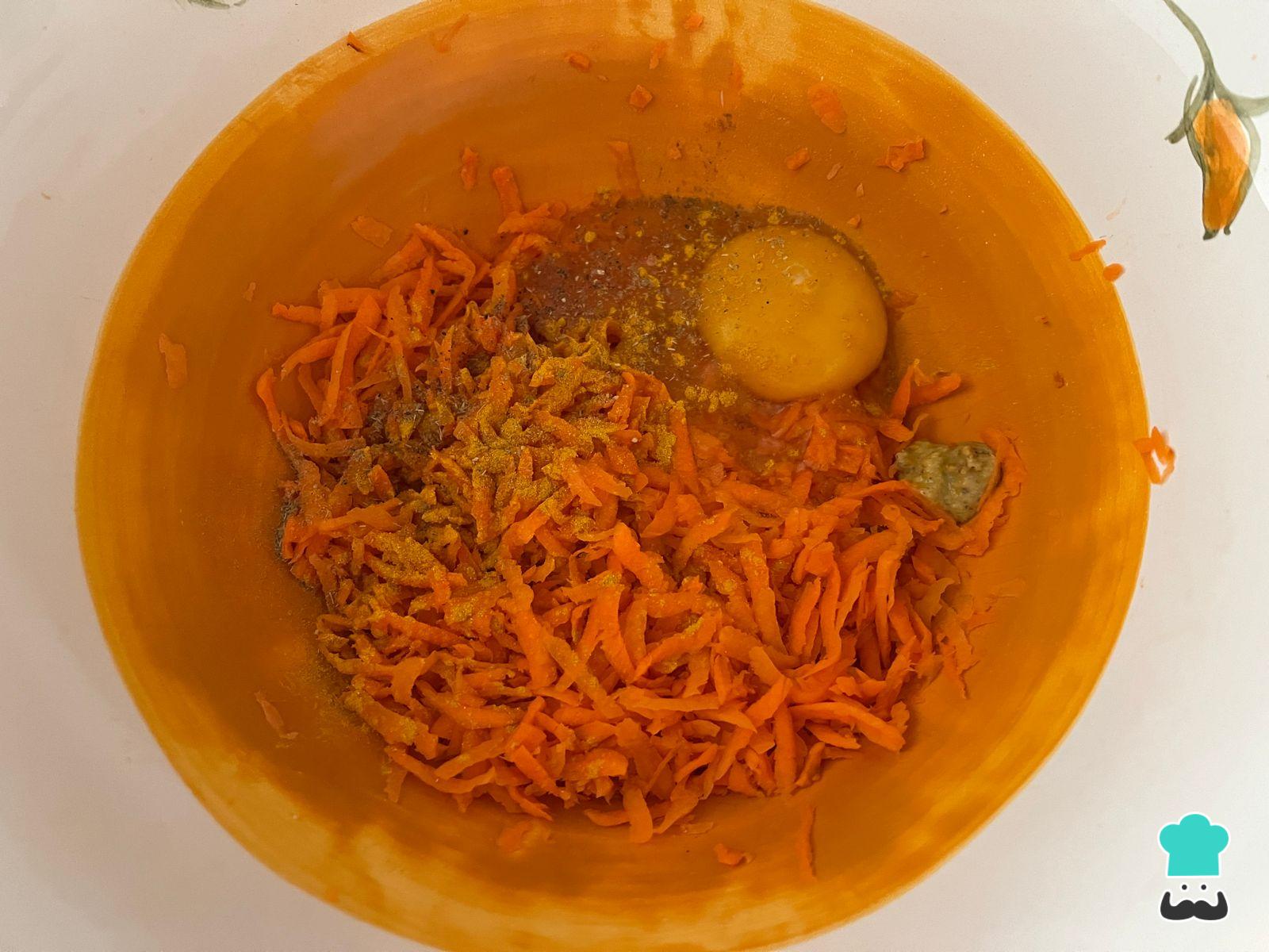 Llévala a un recipiente donde puedas mezclar con los huevos y los condimentos al gusto. Además de los mencionados, puedes agregar mostaza, provenzal, cebolla deshidratada o incluso mezclar la zanahoria con otros vegetales como zucchini, brócoli o coliflor.