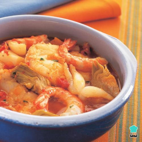 Receta de Platillo de rape, sepia, alcachofas y gambitas